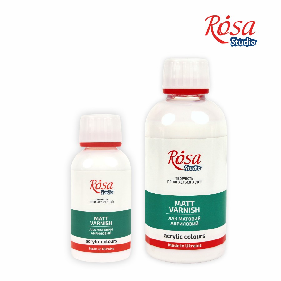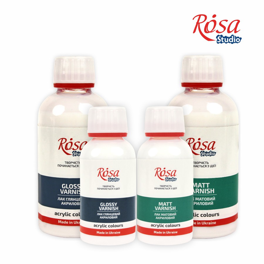 Matte and gloss acrylic varnishes ROSA Studio water-based and designed to cover works of art made with acrylics on various surfaces: canvas, wood, stones, etc. They form a waterproof matte or glossy film on painting, do not stick after drying, do not turn yellow over time and protect from scratches. Thanks to this, the painting retains its original look for a long time.