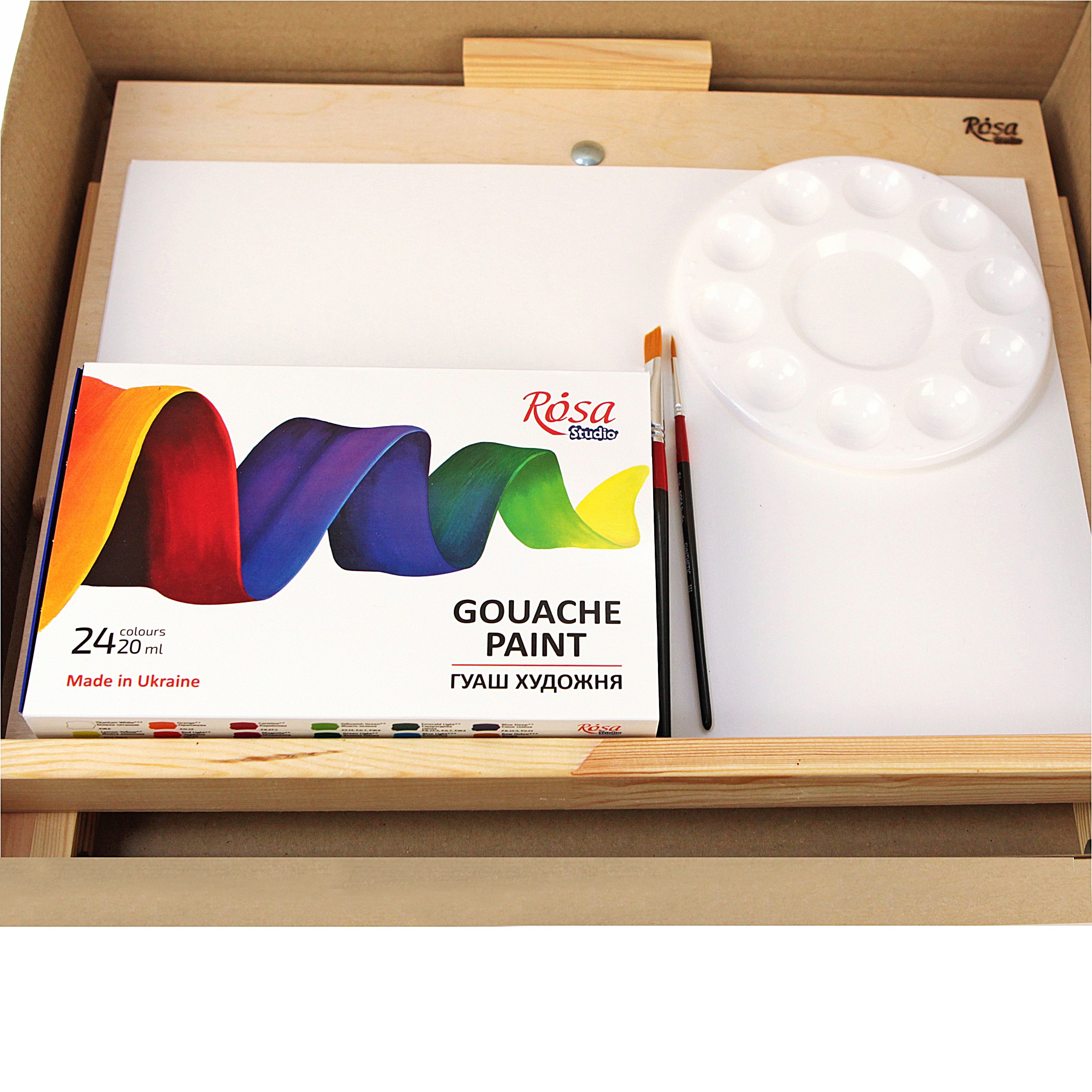 • Convenient tabletop easel-board ROSA Studio is ideal for painting and displaying artwork. Compact design, easy to fold, suitable for small work sizes.