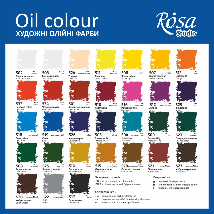 Art oil paints ROSA Studio are designed and manufactured in Ukraine. High-quality raw materials, professional approach and modern specialized equipment guarantee uncompromisingly high quality products.