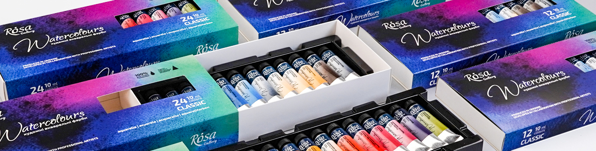 ROSA Gallery Fine Art Watercolour Paints are designed and produced in Ukraine.High-quality materials, professional approach and modern specialized equipment ensure ultimate quality of our products.