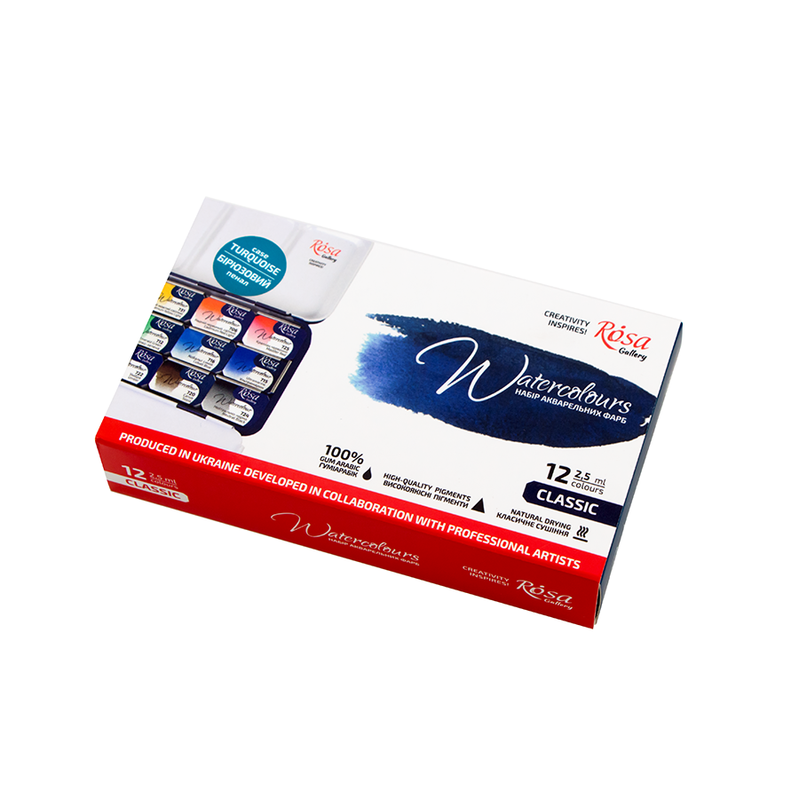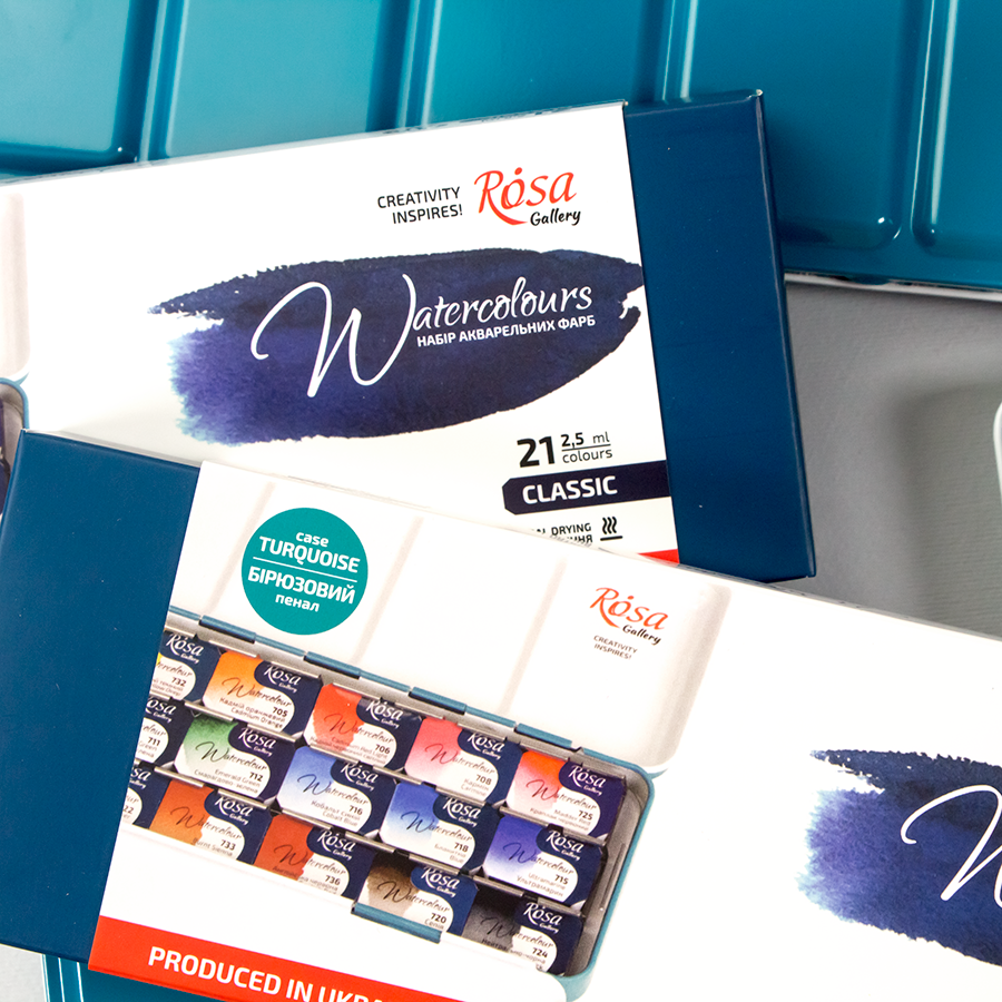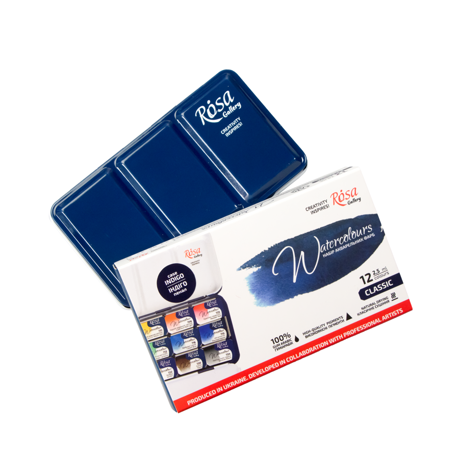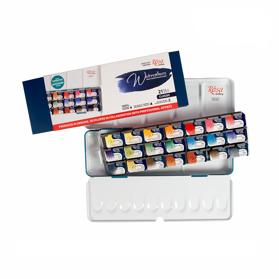 Watercolours sets CLASSIC pans in metal case ROSA Gallery