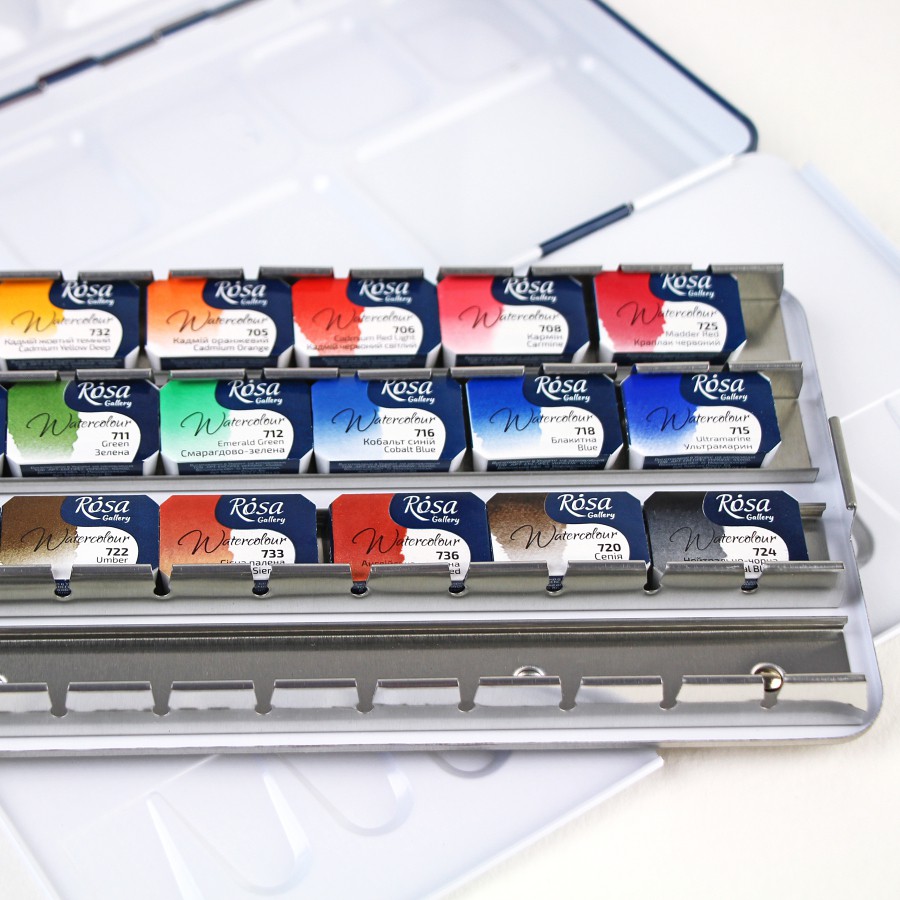 Then several laboratory samples of paint are subject to the expert assessment and testing. Consequently, taking artists’ remarks and preferences into consideration, we refine the colour to start its mass production. ROSA Gallery Fine Art Watercolour Paints are designed and produced in Ukraine. High-quality materials, professional approach and modern specialized equipment ensure ultimate quality of our products.