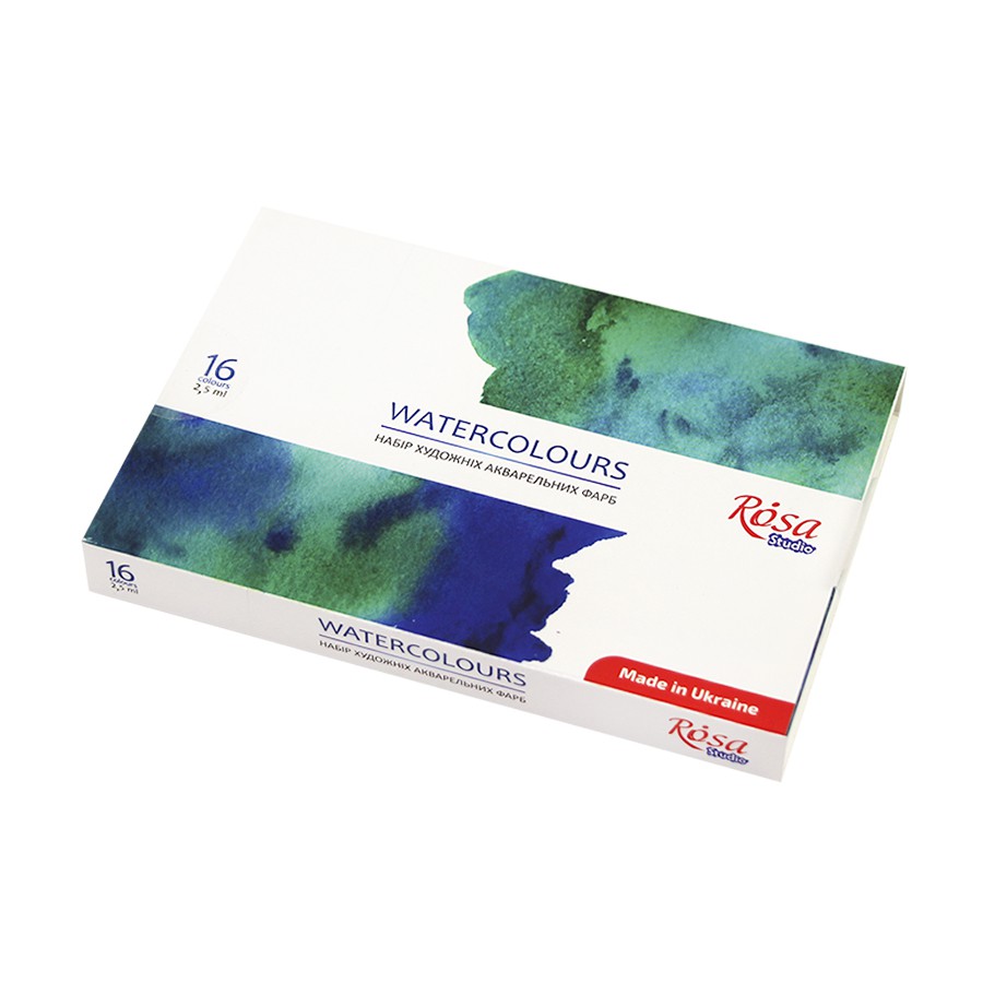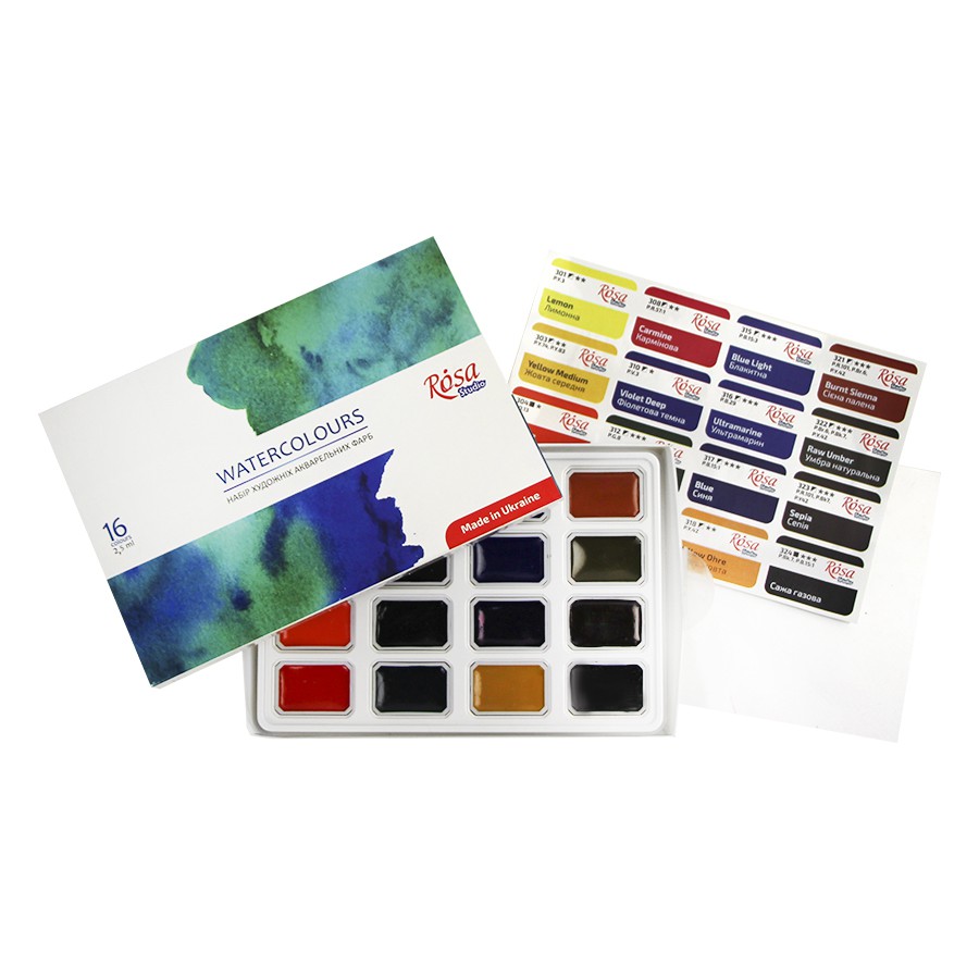 ROSA Studio watercolour sets of 16 and 24 pans are formed from traditional colours of watercolour technique. The colours of the set can be easily mixed and create a wide palette of new colours and shades. Most paints in the set are single pigment, which allows to learn and experiment with mixing.