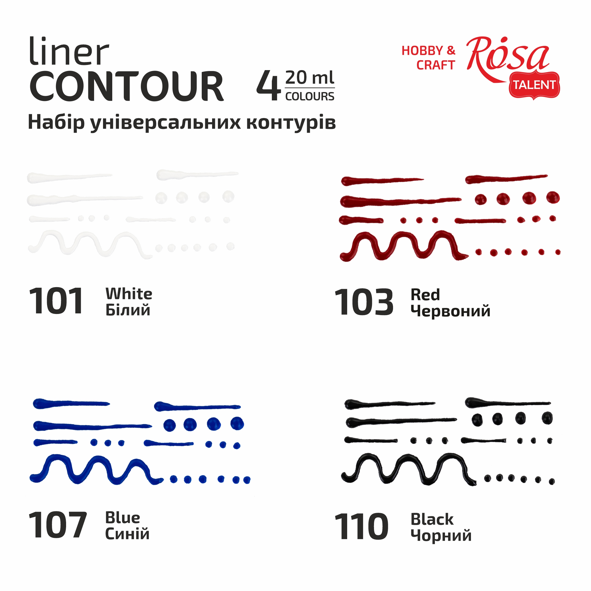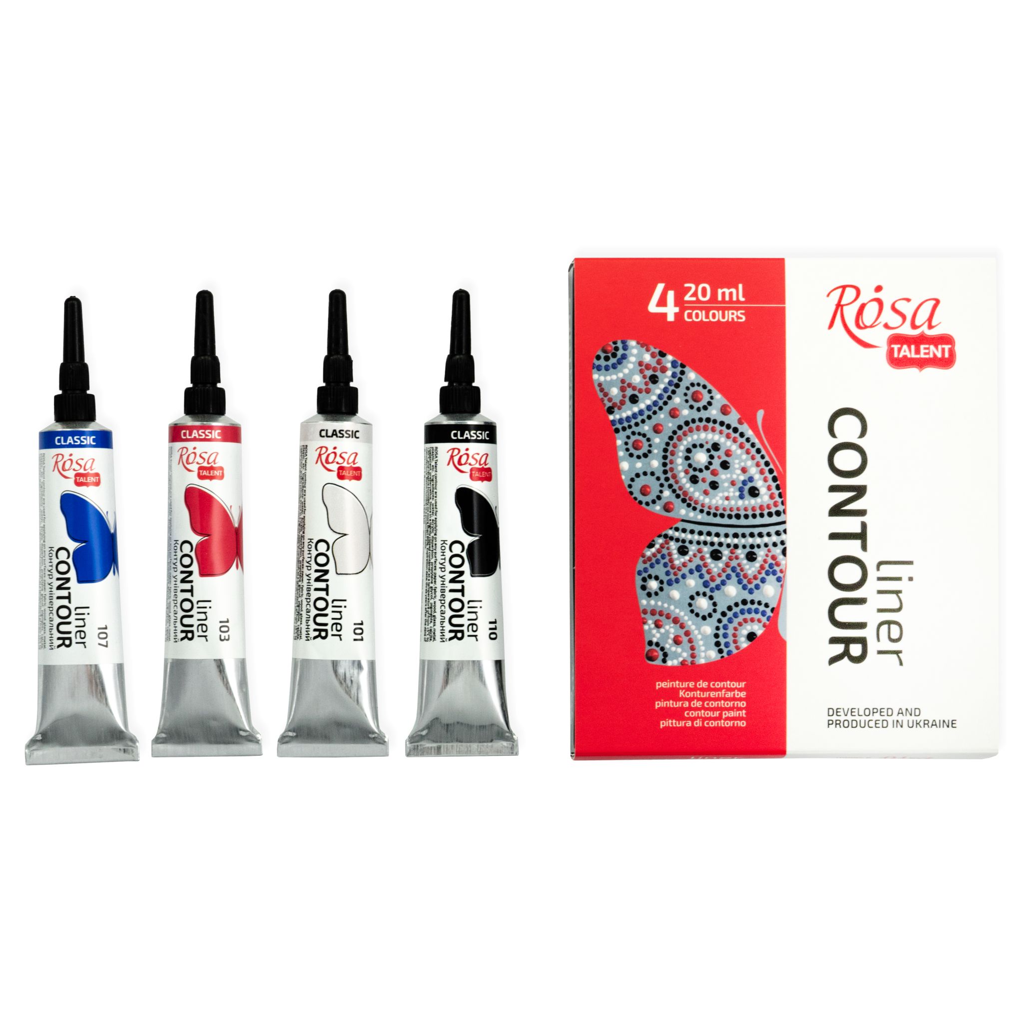 Set of acrylic contours, classic colors, 4*20 мл, ROSA Talent