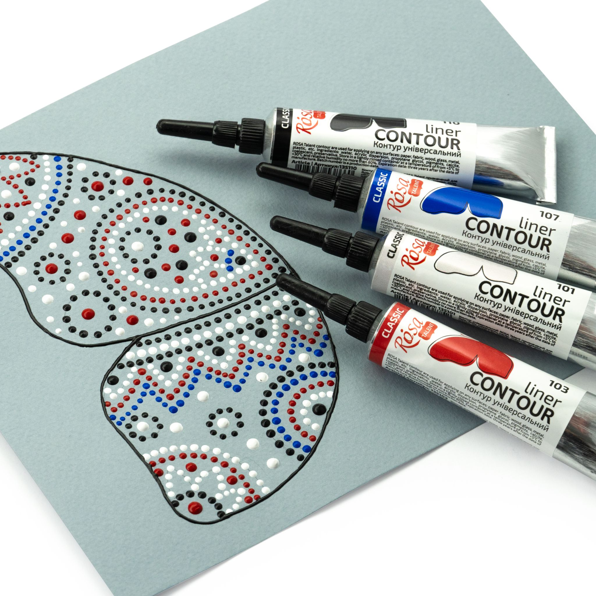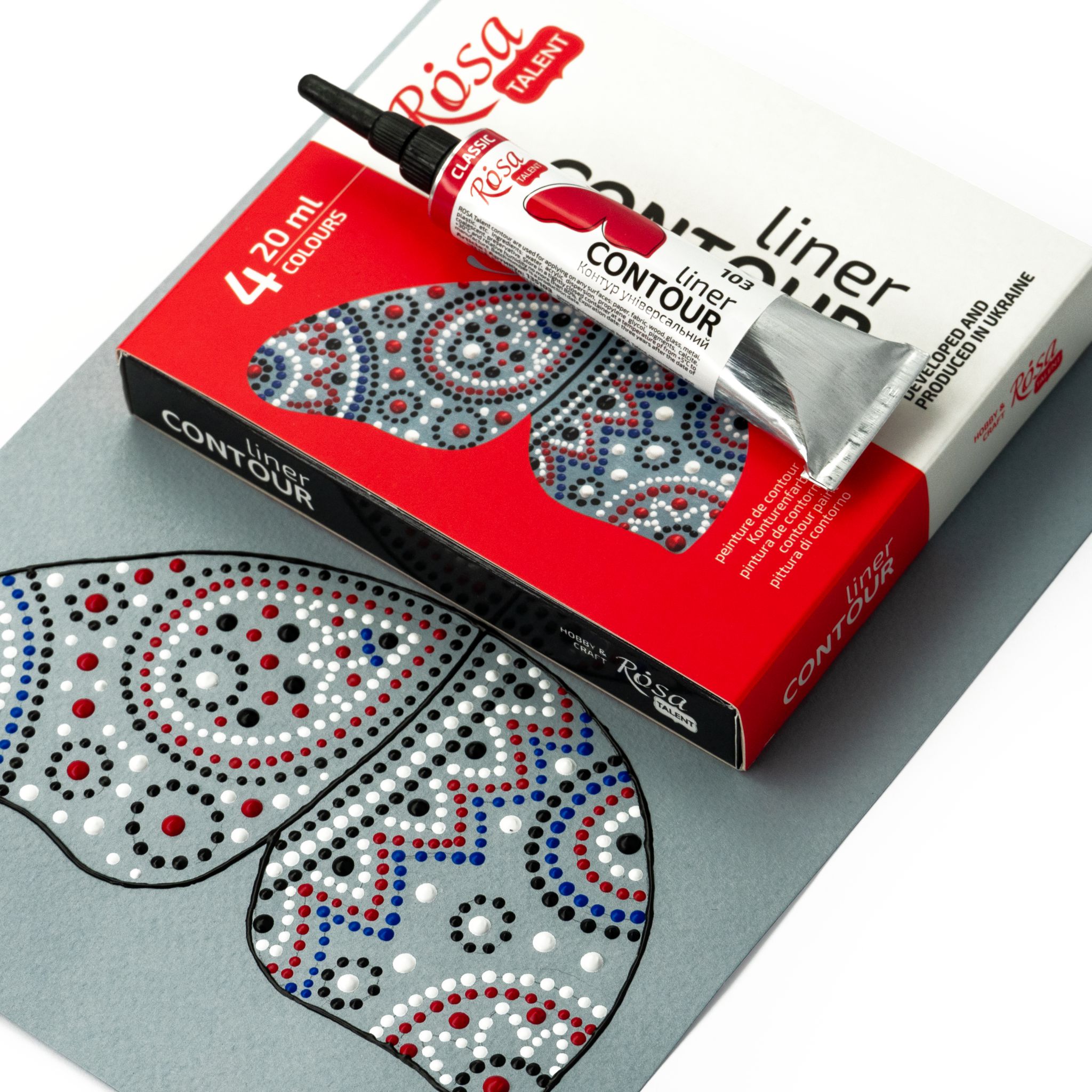 ROSA Talent acrylic contour liners are an indispensable material for crafts and decorating. They can be used to make an ornament pattern, add volume to a picture, create the effect of decorative beads, or create a complete dot painting.