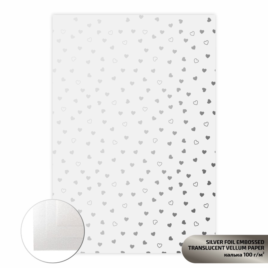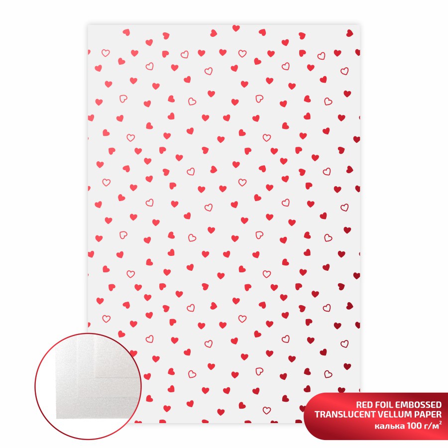 Translucent Vellum Paper with foil embossing „Hearts“ A4 100 g/m2 ROSA Talent