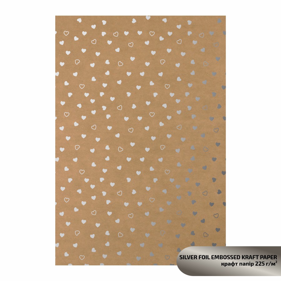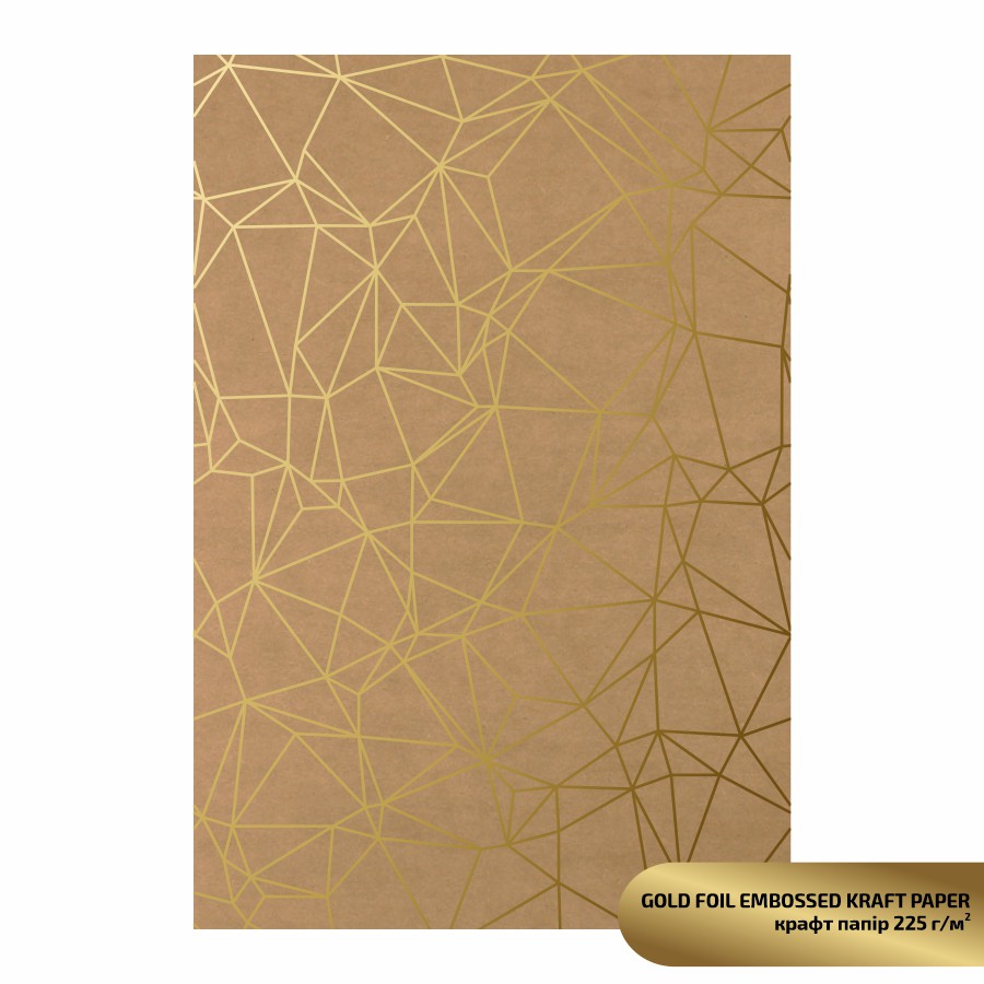 Craft paper with metallic stamping, thanks to the colour of natural wood, will be an excellent addition to the work in eco style.