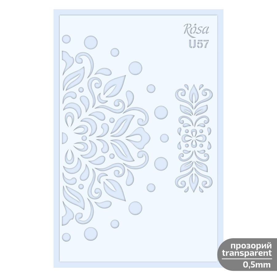 The reusable stencil ROSA Talent will simplify work and open up new opportunities for both beginners and experienced decorators. Durable transparent plastic will ensure long-term use of a stencil, convenience, and simplicity in its care.