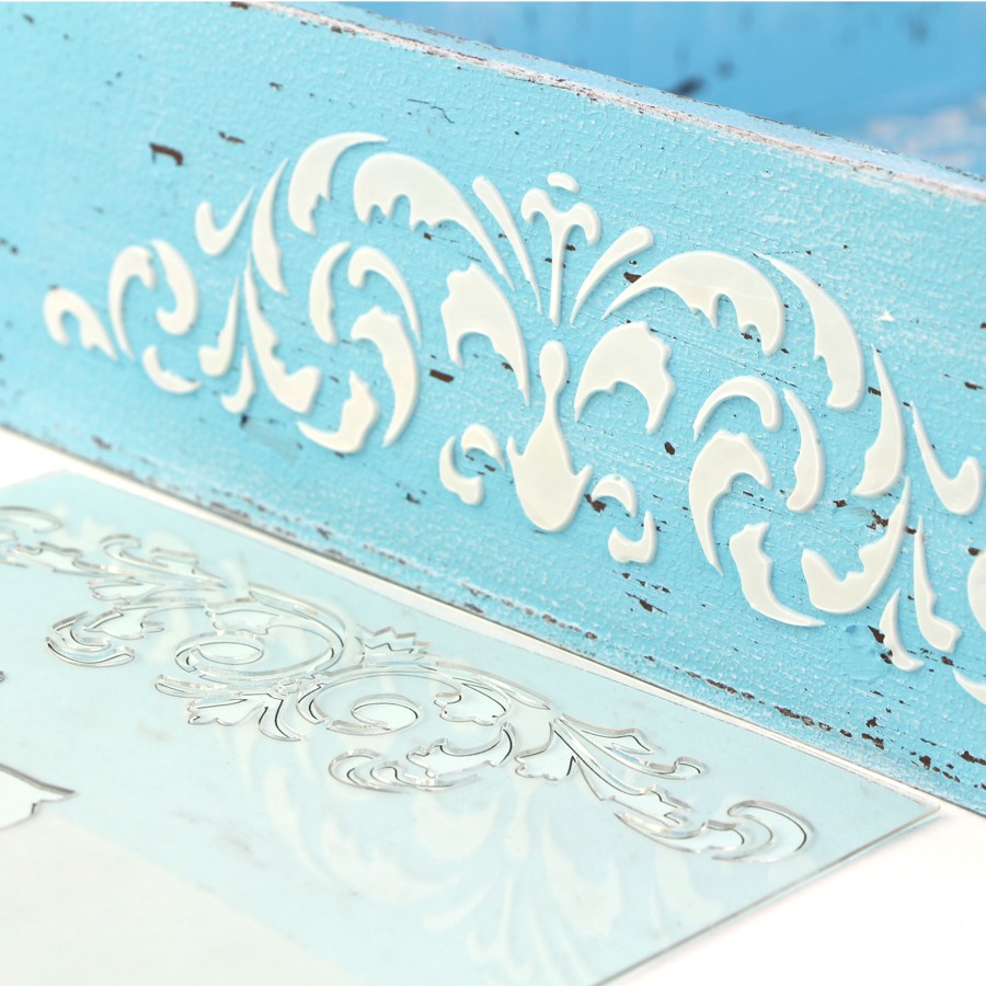 “Tracery” series. Classic patterns, elegant lace elements done in several paint colours will create an independent background, a separate element, and border stencils will exquisitely emphasize the shape and corners of the product.
