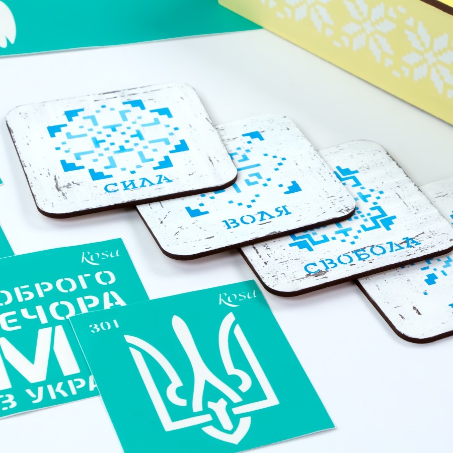 Patriotic collection of stencils from ROSA Talent! With their help, you can decorate a T-shirt, eco bag, jeans or sweatshirt and express your position and tell the world: “I am Ukrainian and I am proud of it!”