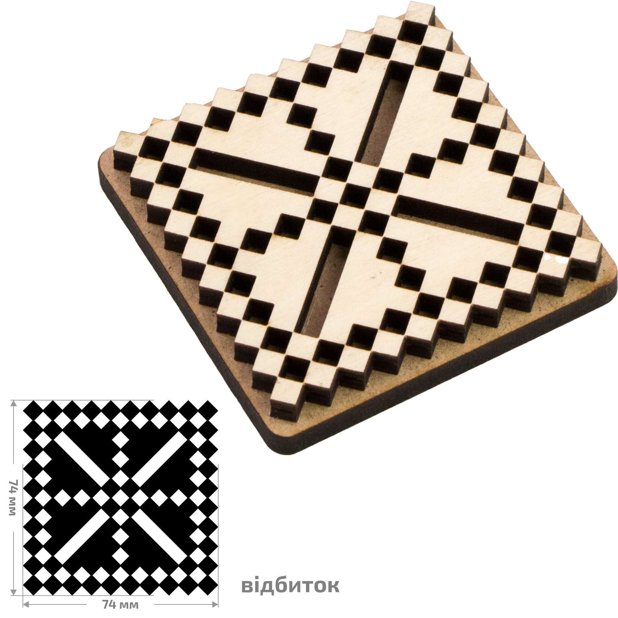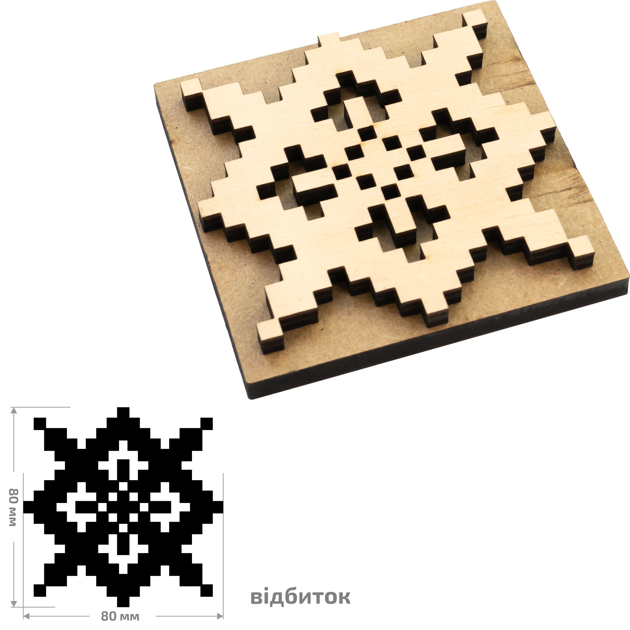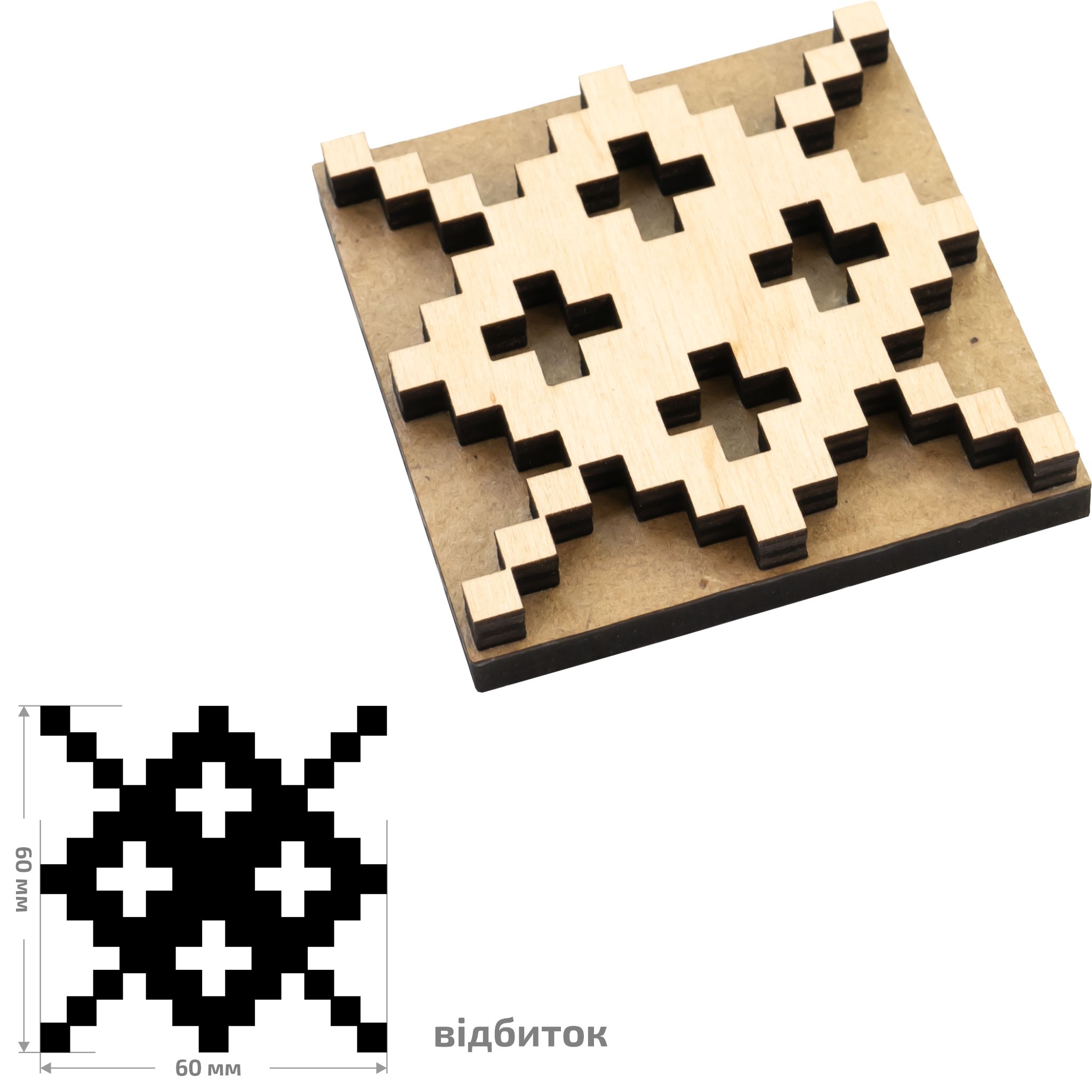 • Матеріал основи — МДФ, а матеріал штампа є фанера