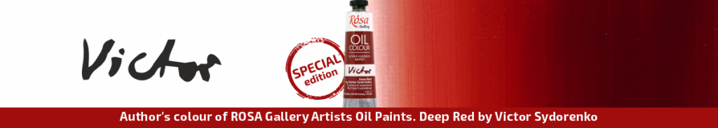 Meet the new special Author’s colour created in collaboration with the famous Ukrainian artist Viktor Sydorenko and ROSA company! Viktor Sydorenko’s deep red is a unique colour of ROSA Gallery’s professional oil art paints that will amaze you with its depth and versatility from the first stroke.