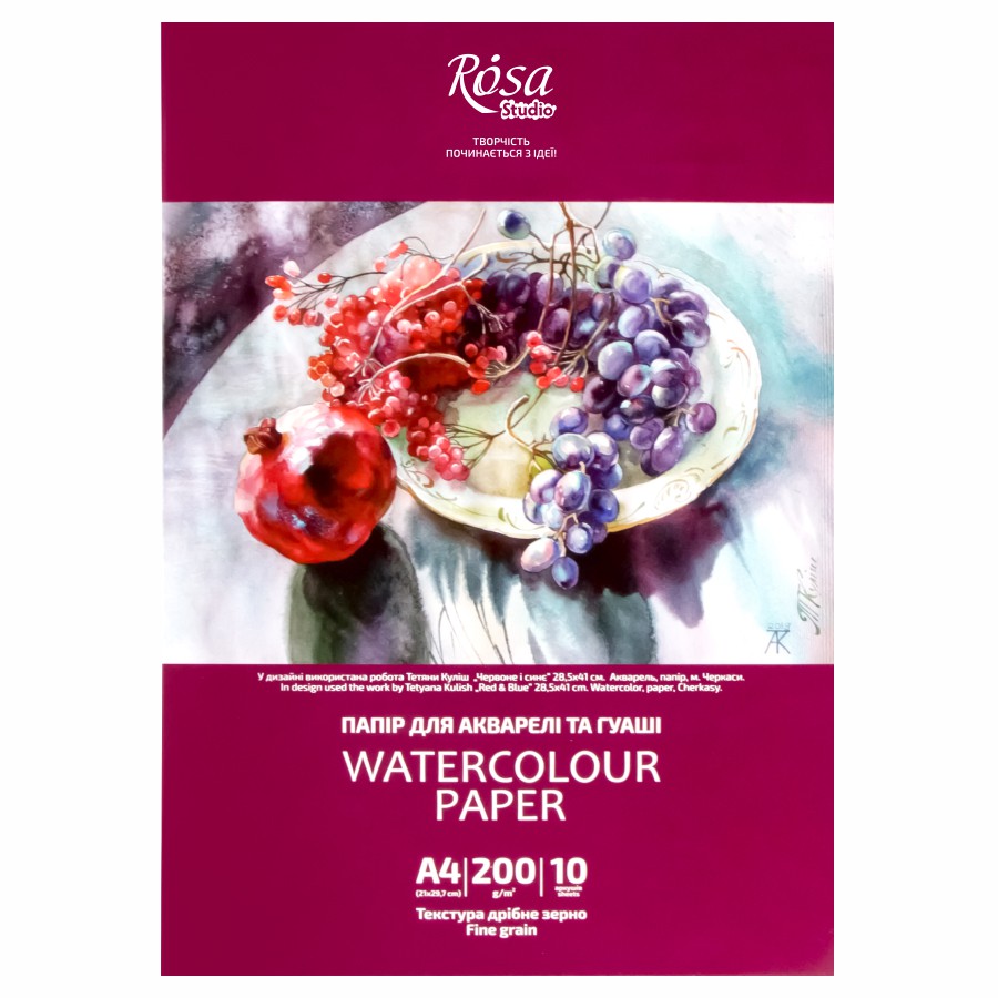 Папки для акварелі 10 арк дрібне зерно 200 г/м2 ROSA Studio
