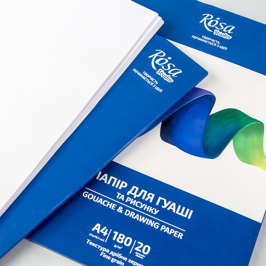 Папки паперу для гуашевих фарб від ROSA Studio розроблені для найпопулярнішої техніки навчання живопису. Текстура, щільність, проклейка паперу відповідають усім вимогам техніки гуаш.