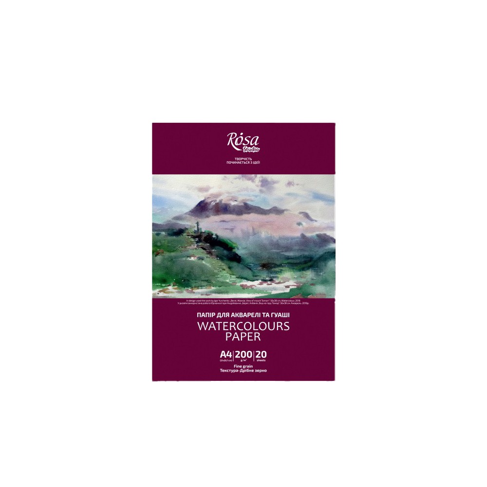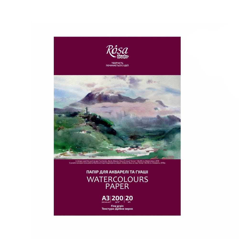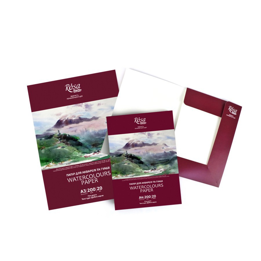 Папки для акварелі, 20 арк. дрібне зерно, 200 г/м2, А3/А4, ROSA Studio