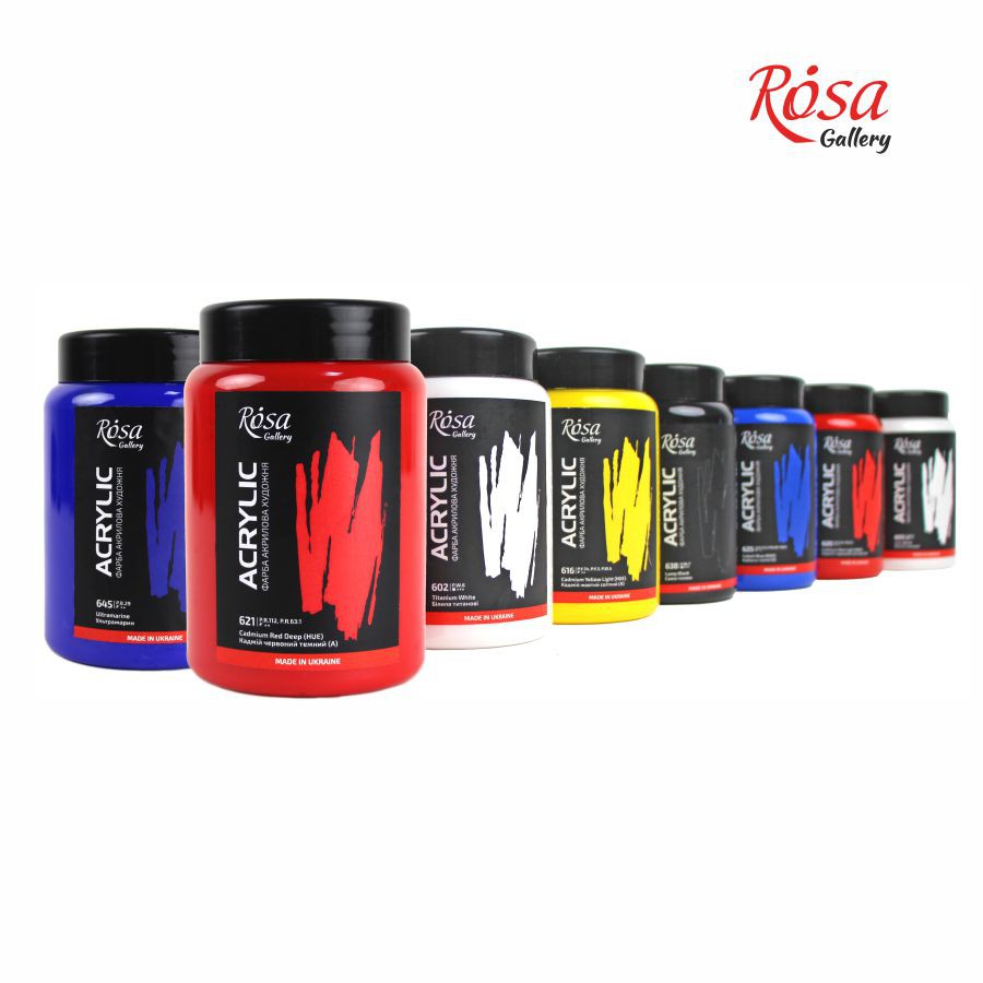 Професійні художні акрилові фарби ROSA Gallery – розроблені для живопису з урахуванням вимог та рекомендацій професійних художників. Виготовлені з високоякісних пігментів високого ступеня перетертості на основі сучасних акрилових дисперсій.