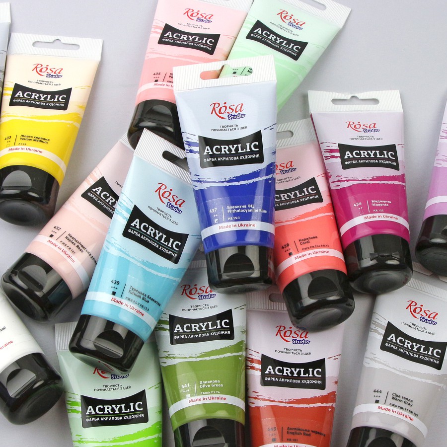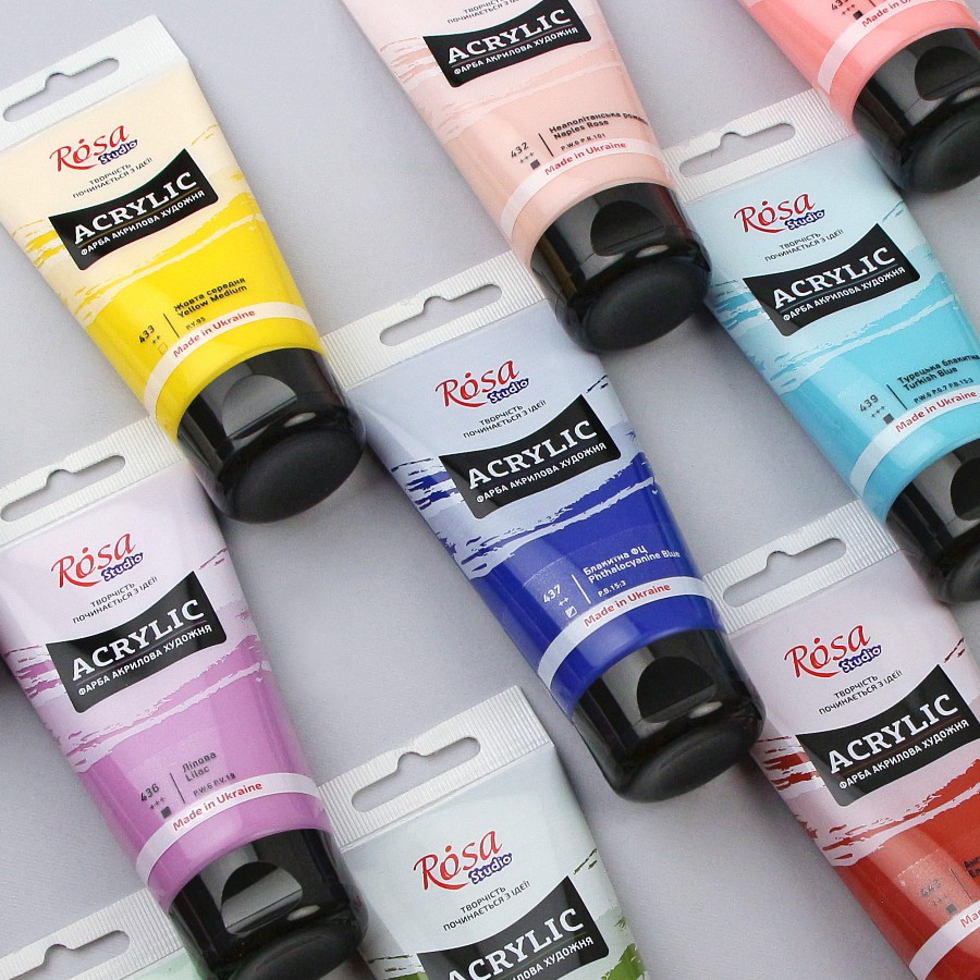 Художні акрилові фарби ROSA Studio призначені для навчання, пленерів та роботи у студії. Фарби виготовлені з високоякісних органічних та неорганічних пігментів високого ступеня перетертості на основі сучасних акрилових дисперсій.
