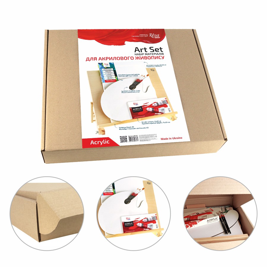 В наборах матеріалів для акрилового живопису ROSA Studio підібрані всі необхідні базові матеріали в даних техніках, що дає можливість користуватись ним відразу.