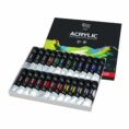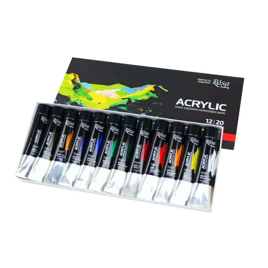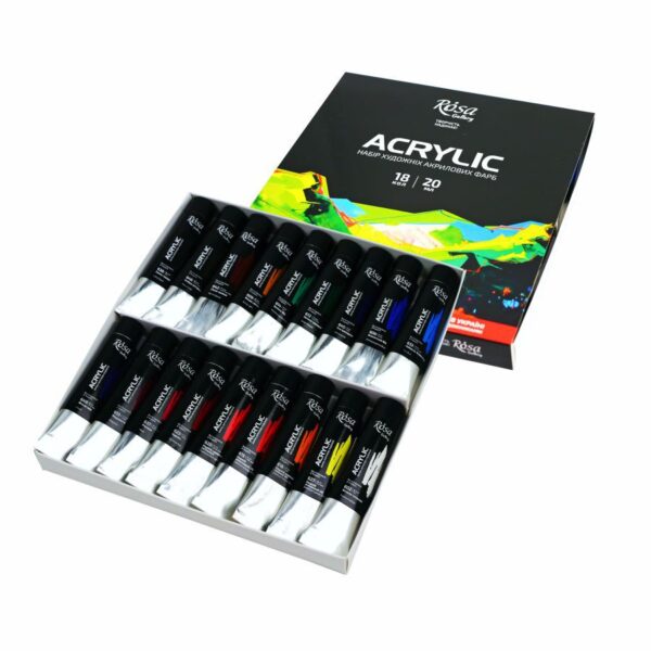 В асортименті представлені набори акрилових фарб ROSA Gallery на 12х20 мл, 18х20 мл та 24х20 мл. Кожен набір фарб включає ретельно підібрані з повної гами кольори, які чудово змішуються між собою утворюючи нові відтінки. Висока концентрація пігментів забезпечує чистоту та насиченість кольорів. Густа консистенція відмінно тримає форму мазка та дає можливість писати як у тонкому шарі, так і пастозно.