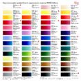 602 – Білила титанові, 627 – Кадмій лимонний, 617 – Кадмій жовтий темний, 619 – Кадмій оранжевий, 620 – Кадмій червоний світлий, 623 – Кармін, 655 – Маджента, 637 – Рожева, 649 – Фіолетова, 633 – Небесно-блакитна, 606 – Блакитна ФЦ, 645 – Ультрамарин, 612 – Зелена середня, 614 – Зелена ФЦ, 609 – Вохра світла, 642 – Сієна палена, 646 – Умбра натуральна, 638 – Сажа газова