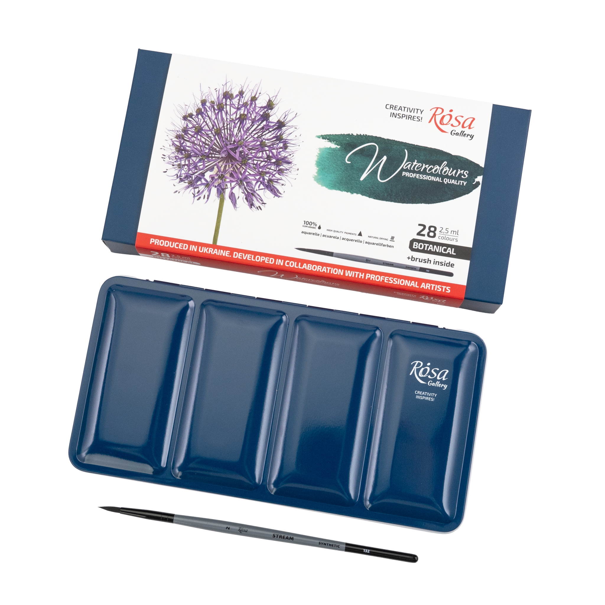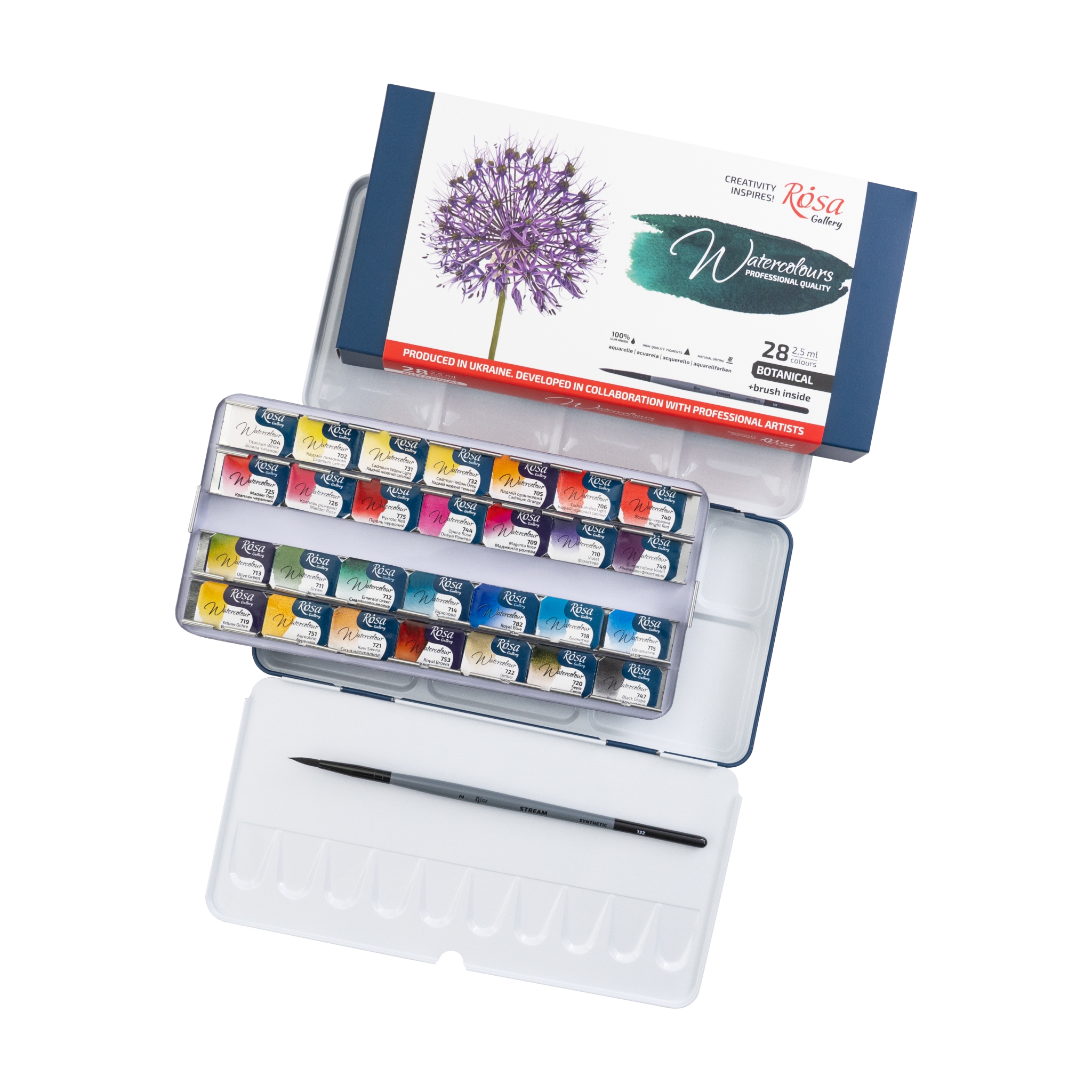 Набір акварелі BOTANICAL + пензель в металевому пеналі ROSA Gallery