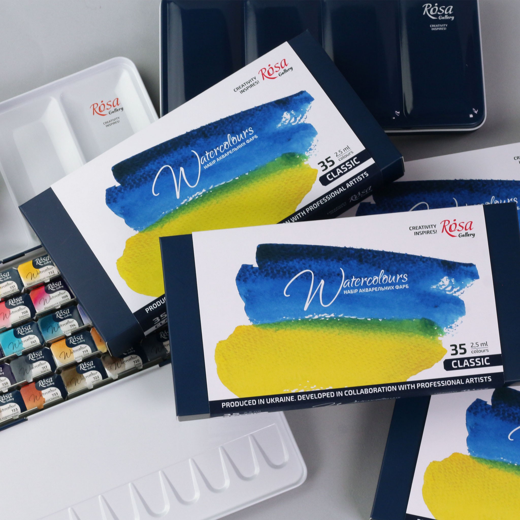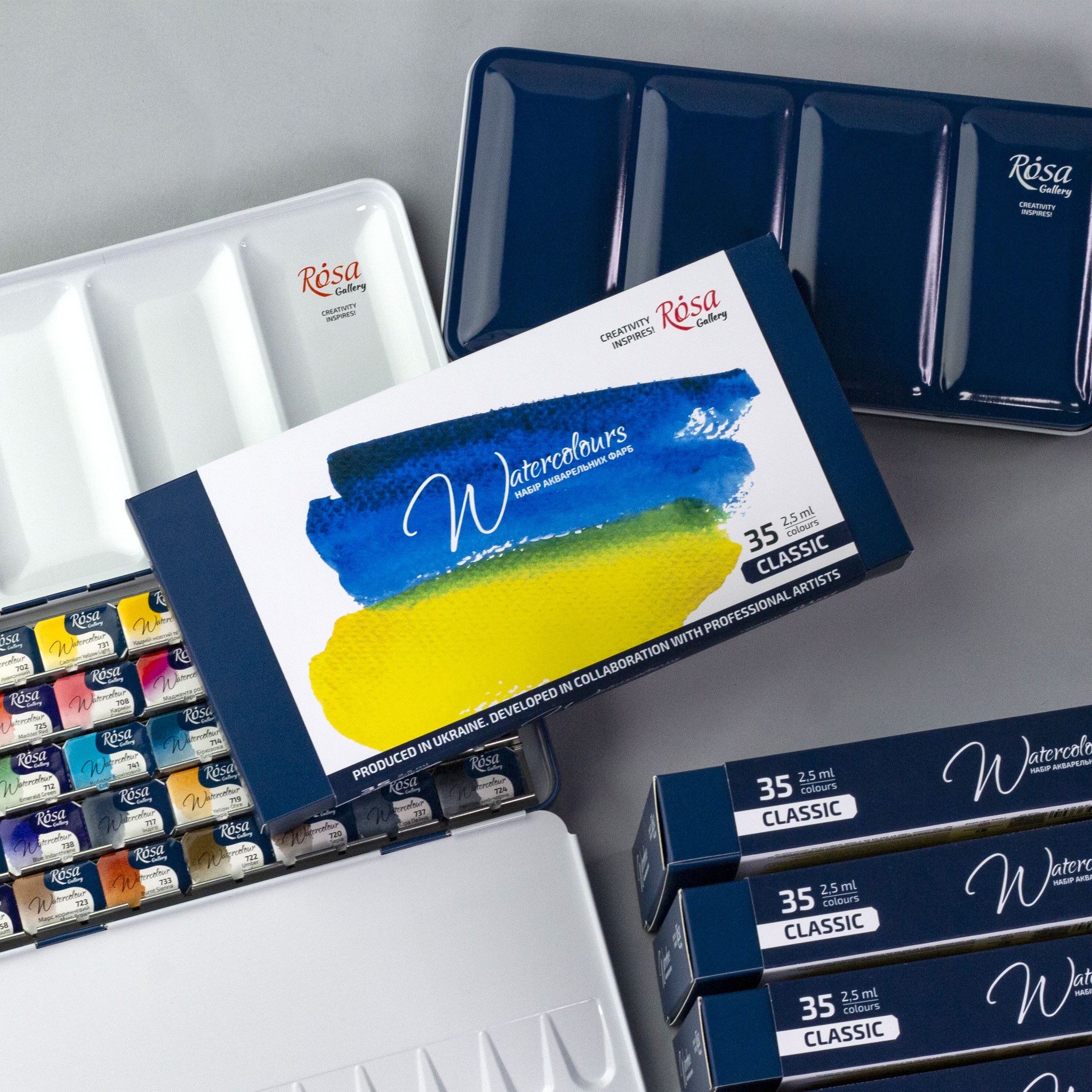 Набір акварельних фарб CLASSIC на 35 кольорів сформований з традиційної палітри акварелі на базі знаного набору на 28 фарб та доповнений новими популярними кольорами (Ауреолін, Білила титанові, Капут-мортуум, Кобальт бірюзовий, Лавандова, Маджента рожева, Церулеум).