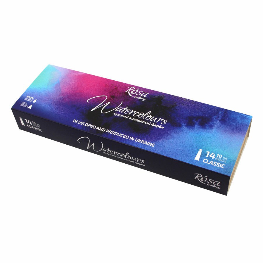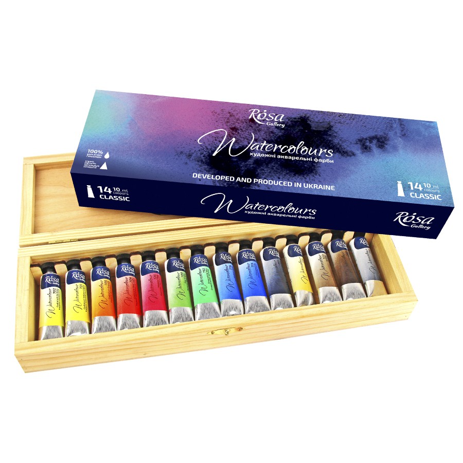 Набір акварелі CLASSIC в тубі, дерев. пенал, 14 кол., ROSA Gallery