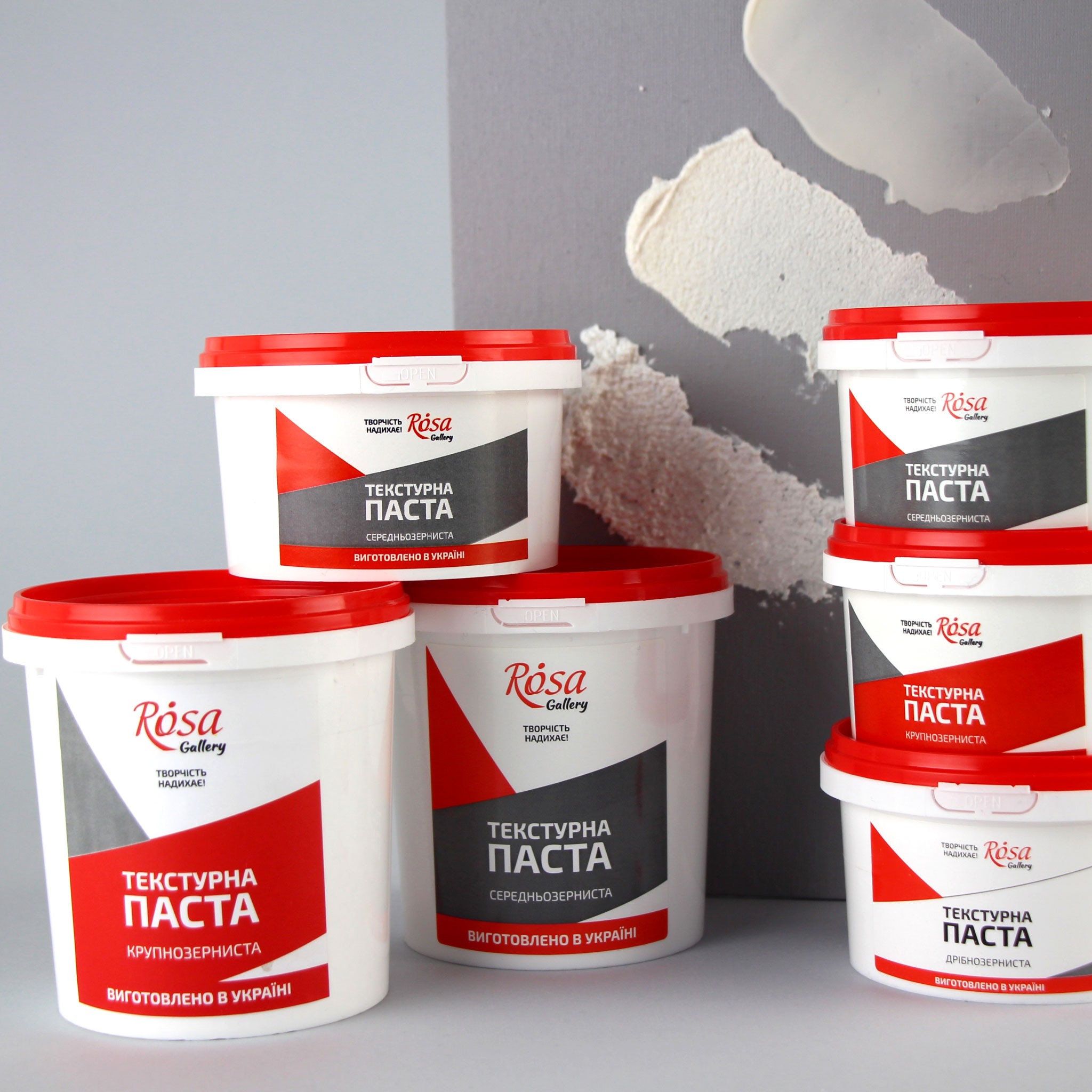 Дрібнозерниста текстурна паста ROSA Gallery призначена для створення гладких рельєфів, є незамінною для об’ємного рельєфного живопису та роботи з трафаретами.