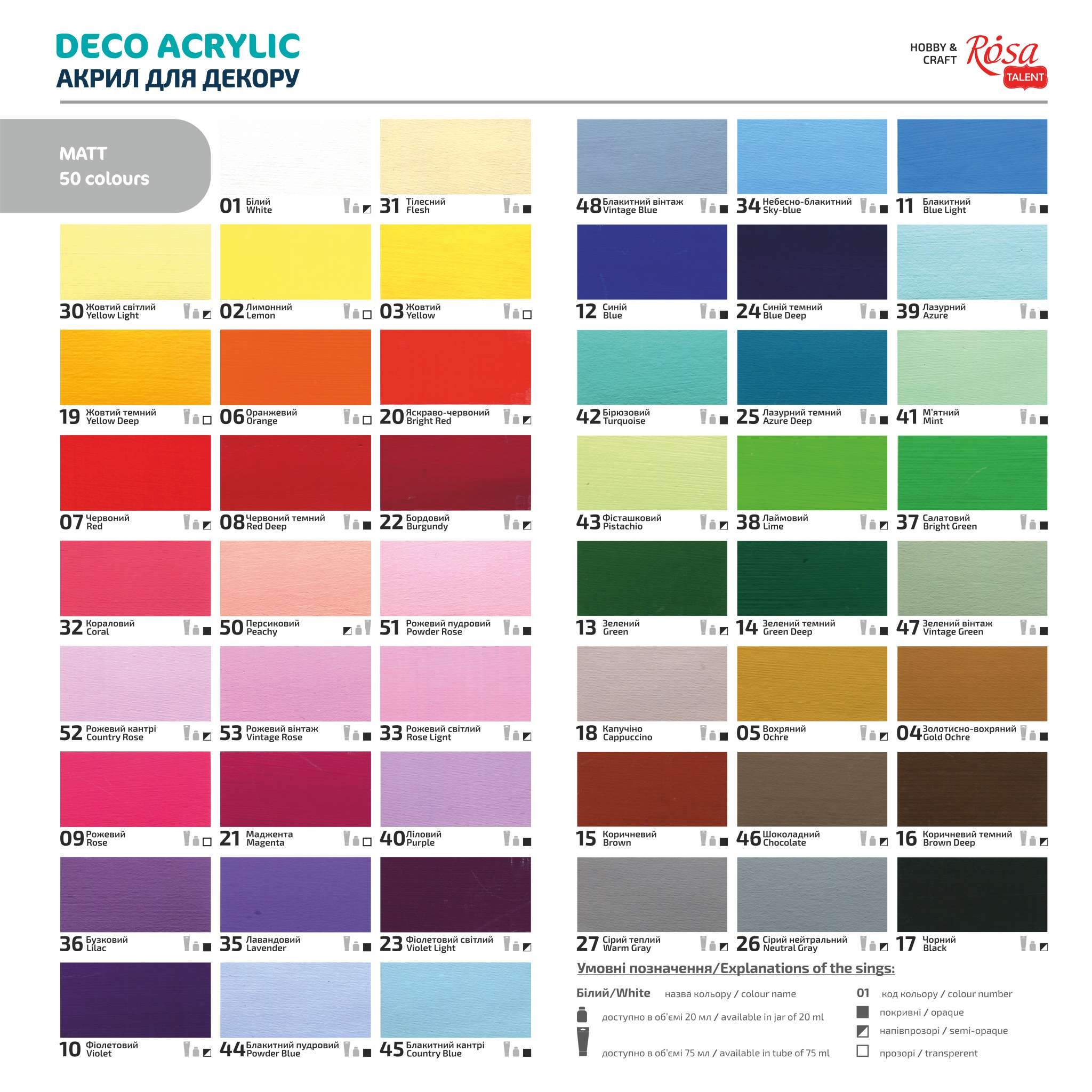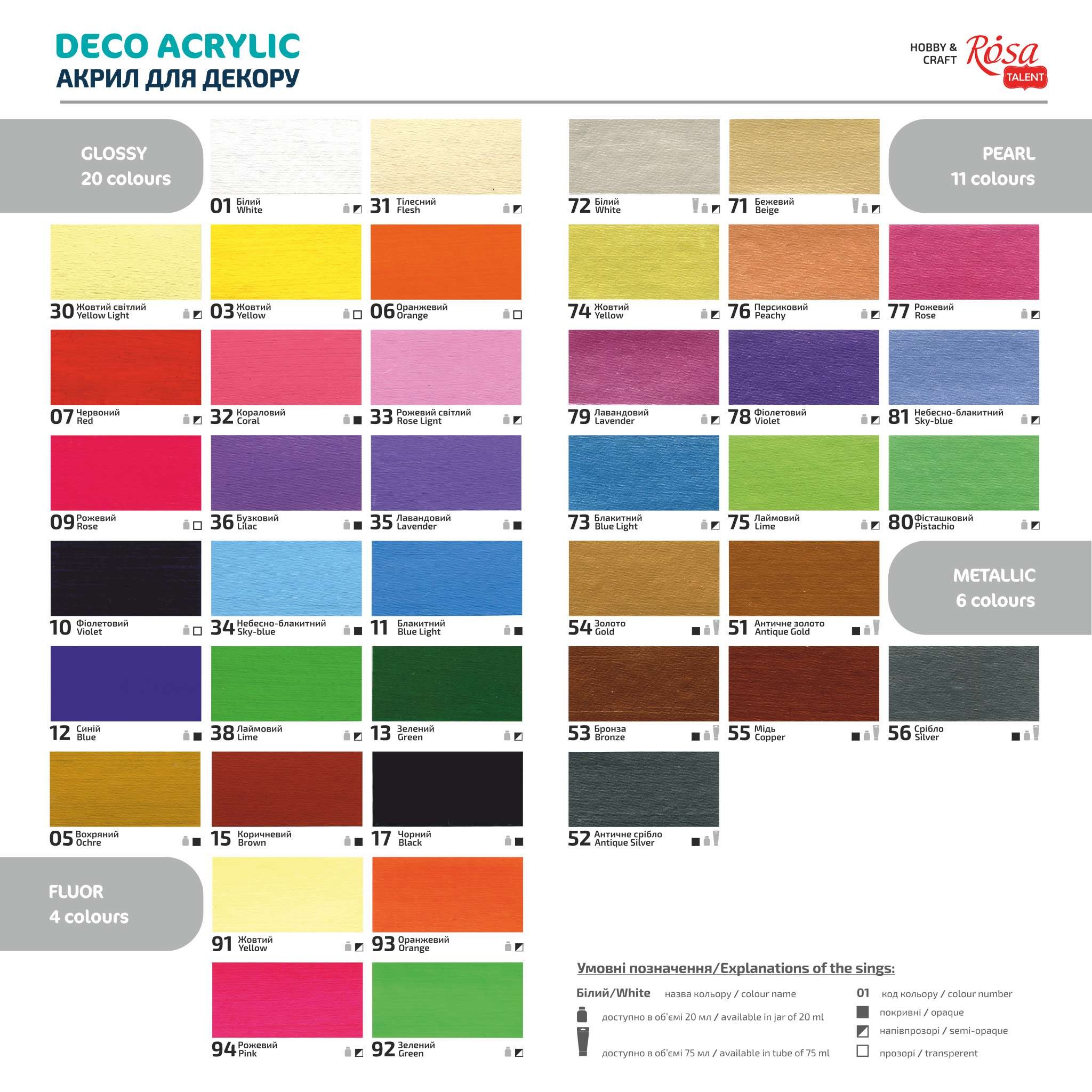 КАРТА КОЛЬОРІВ Каталог акрилу для декору ROSA TALENT