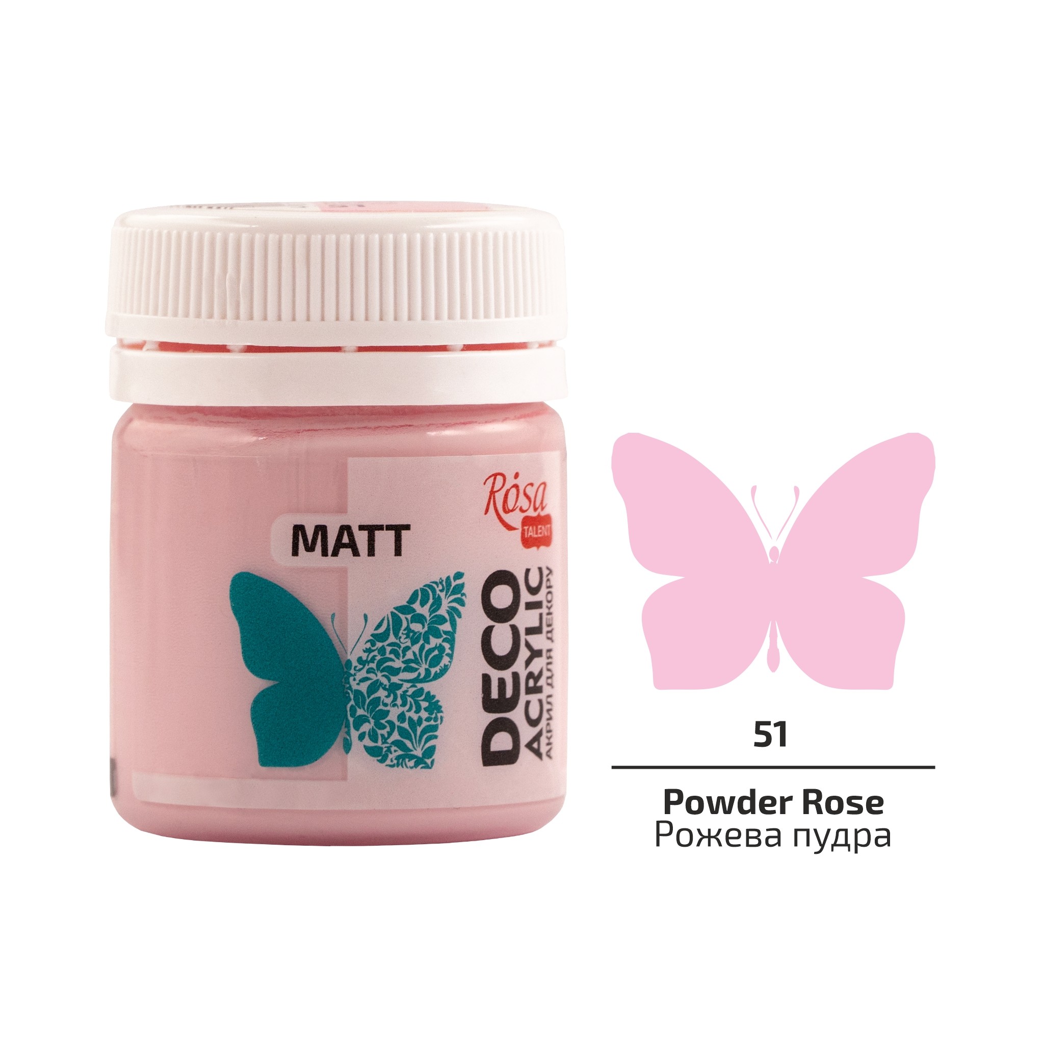 Матовий акрил для декору ROSA Talent – однорідні покривні фарби, які після висихання утворюють бархатисту матову поверхню.