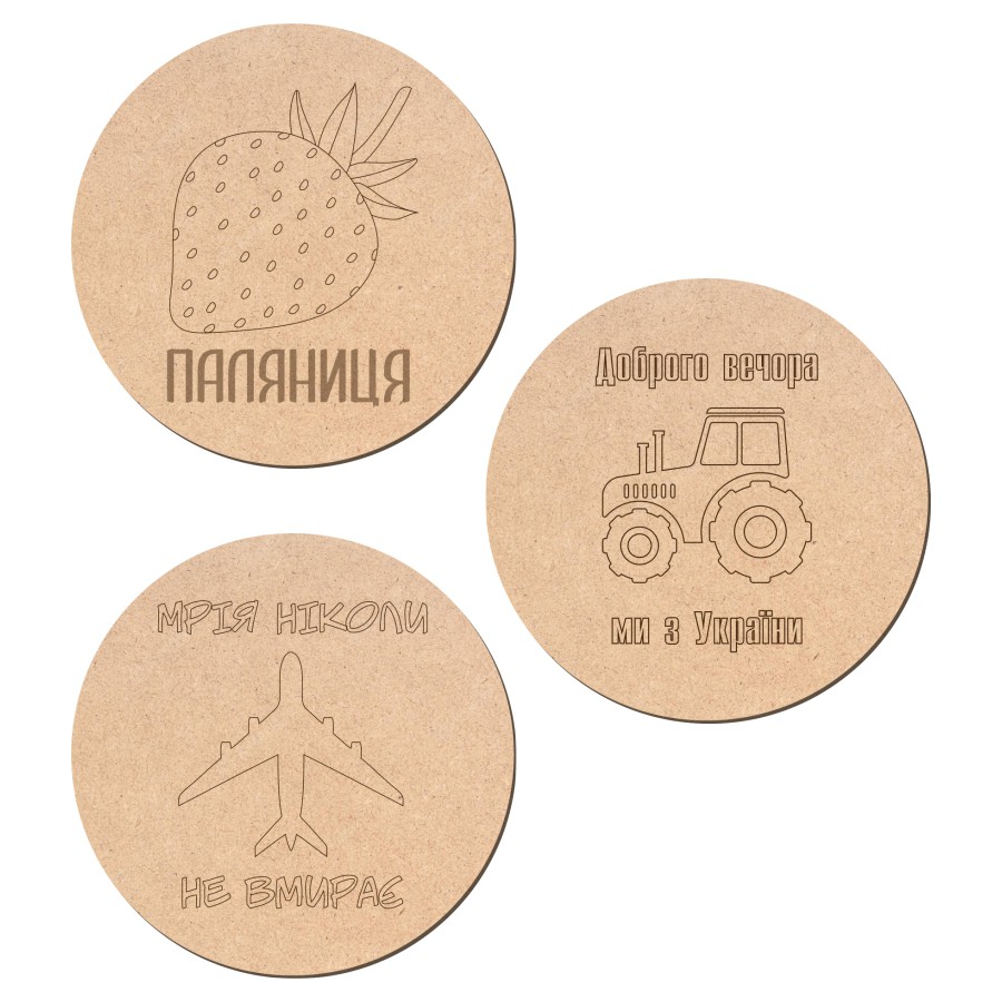 Набори підставок під чашки „Україна“ МДФ d:10см 3 шт. ROSA Talent