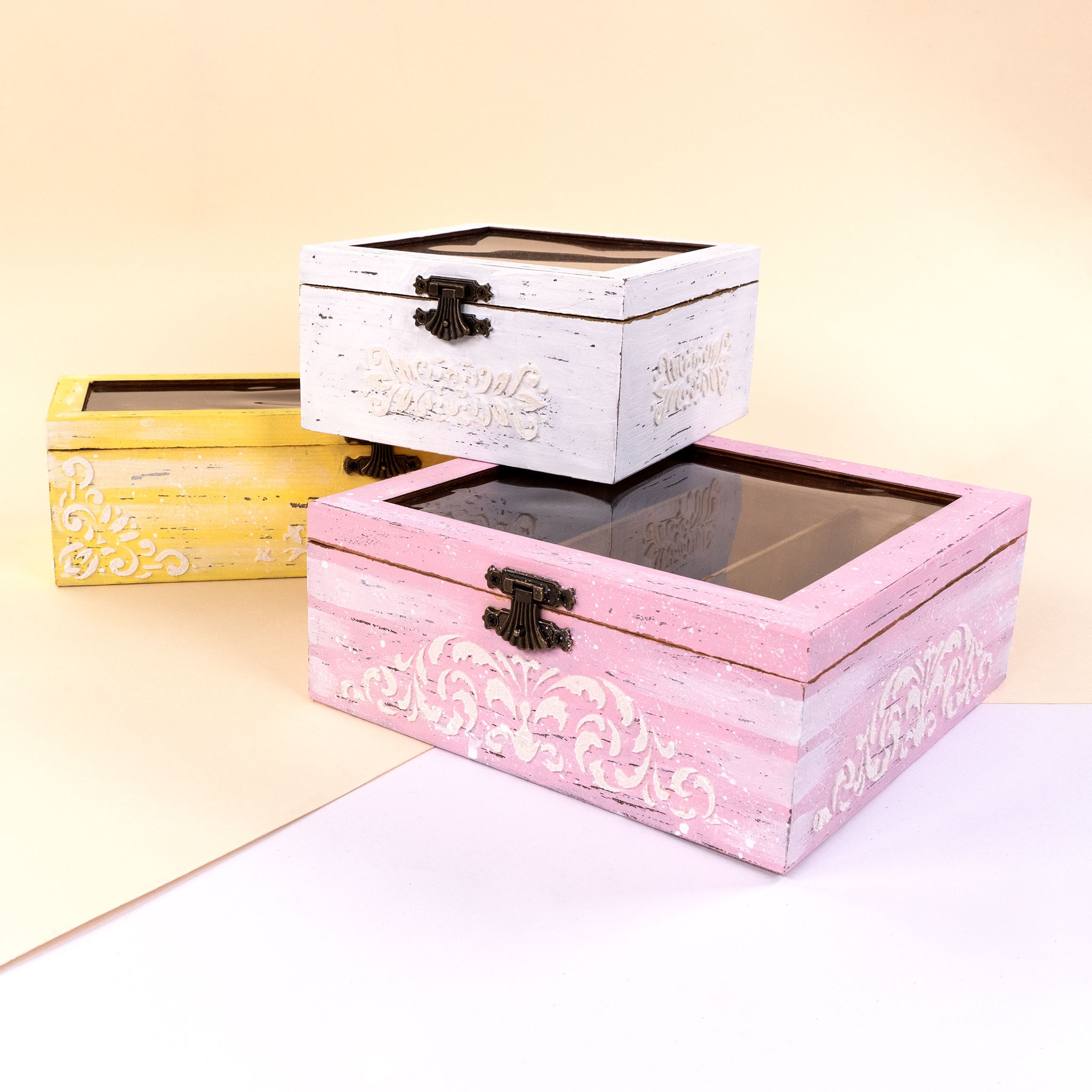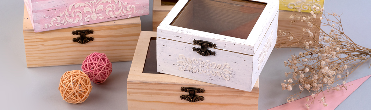 Скриньки ROSA Talent можна розписати акриловими фарбами з різними ефектами, контурами для об’ємного розпису, зробити декупаж або кракелюр. Створюйте візерунки власноруч або використовуйте трафарети та штампи для вибійки від ROSA Talent.