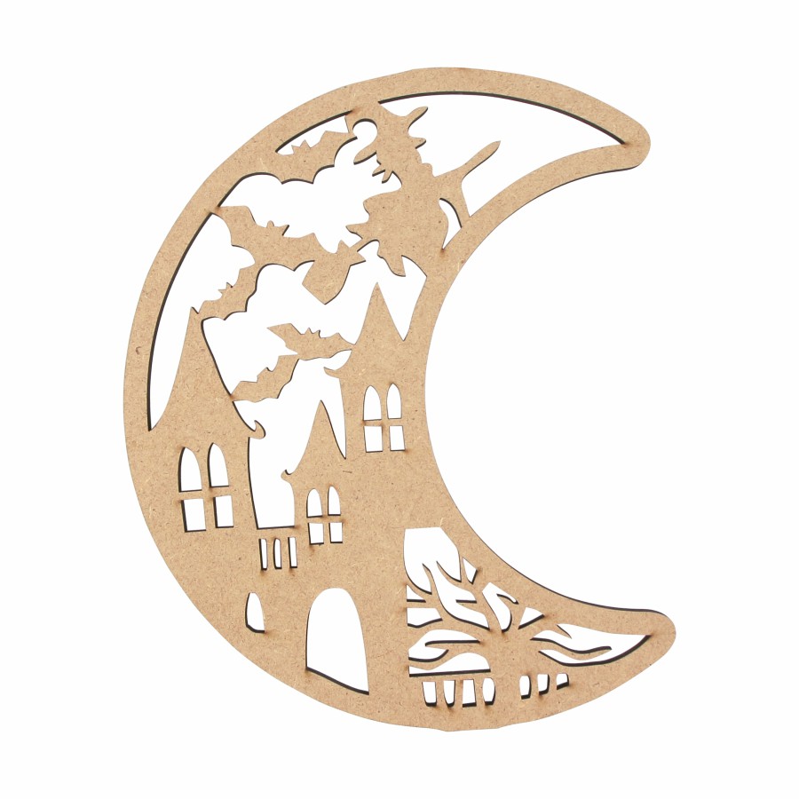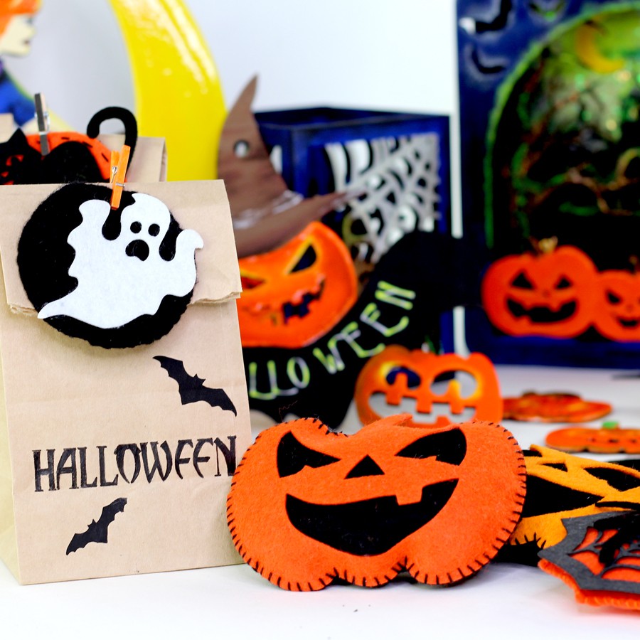 Заготовки для декору із фанери і МДФ: будиночок для цукерок, декоративні стакани, які можна використовувати як підсвічники, декоративні написи, підвісні панно, 3D композиції, набори гарбузів та ключів. Оформіть вікна тематичними фігурками кажанів, привидів, павуків – у вечірньому освітленні вони виглядатимуть дуже атмосферно!