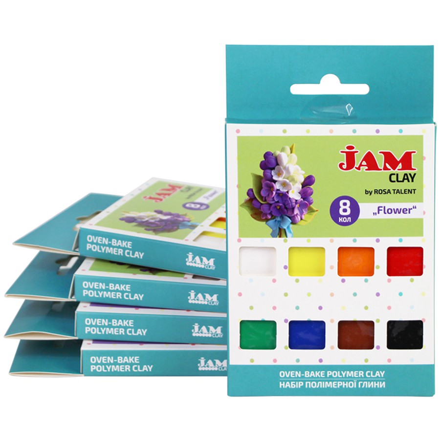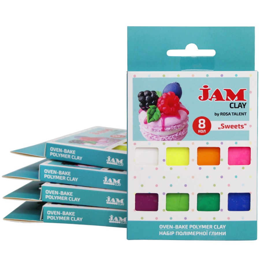Полімерна глина JAM CLAY by ROSA Talent – це чудовий матеріал для створення унікальних прикрас та біжутерії (підвіски, сережки, перстні, браслети, брошки, гудзики), декоративних виробів (вазочки, статуетки, фігурки, брелоки, закладки для книжок), декорування предметів (рамки для фото, посуд), створення допоміжних декоративних елементів для інших технік: скрапбукінг, кардмейкінг, фелтінг.