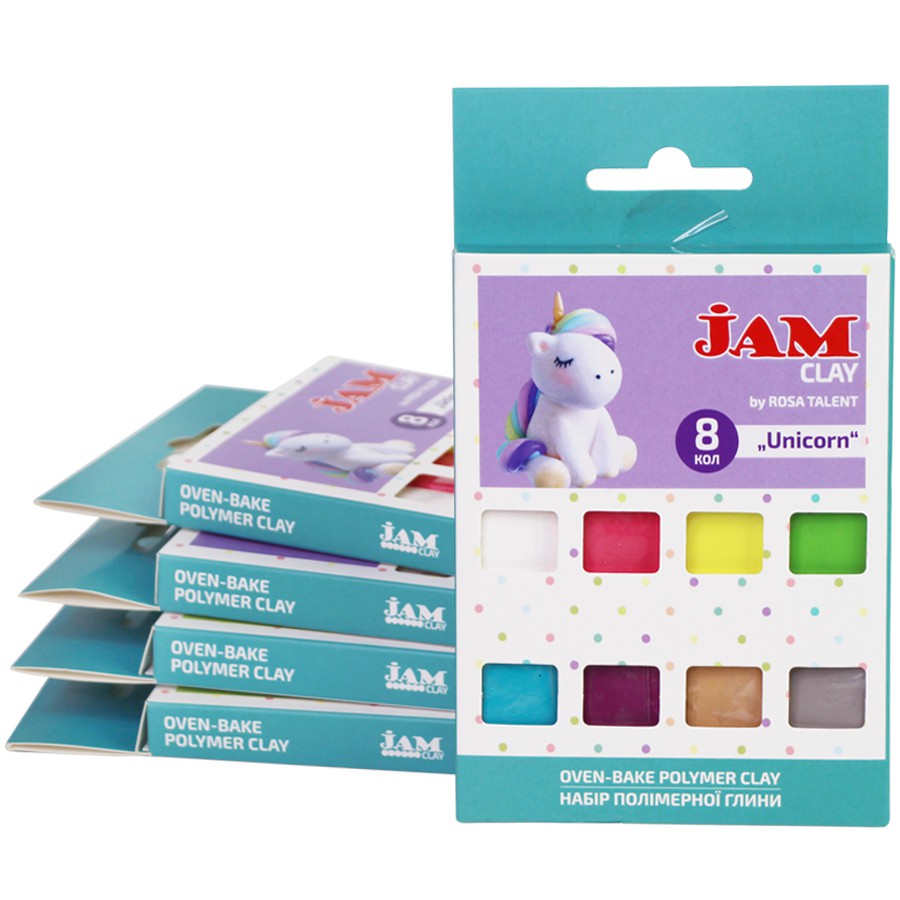 Набори полімерної глини JAM CLAY by ROSA Talent на 8 кольорів по 20 г доступні в тематиках: Rainbow, Flowers, Sweets, Unicorn