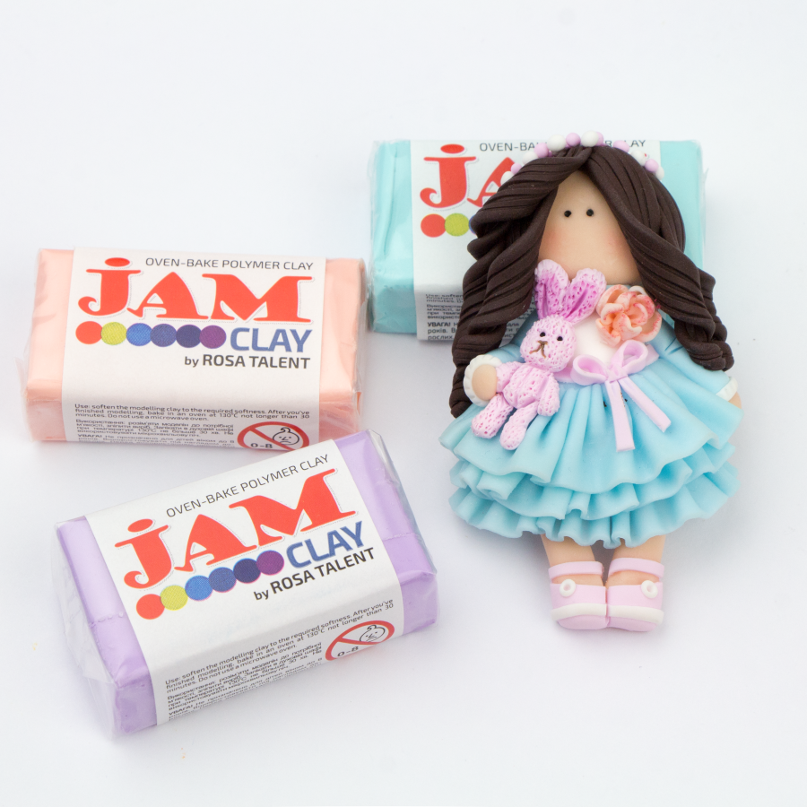 Полімерна глина JAM CLAY by ROSA Talent – це чудовий матеріал для створення унікальних прикрас та біжутерії (підвіски, сережки, перстні, браслети, брошки, гудзики), декоративних виробів (вазочки, статуетки, фігурки, брелоки, закладки для книжок), декорування предметів (рамки для фото, посуд), створення допоміжних декоративних елементів для інших технік: скрапбукінг, кардмейкінг, фелтінг.
