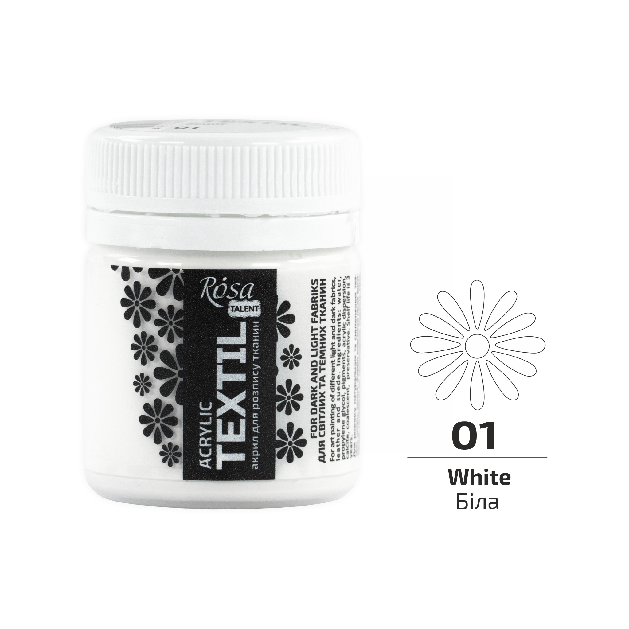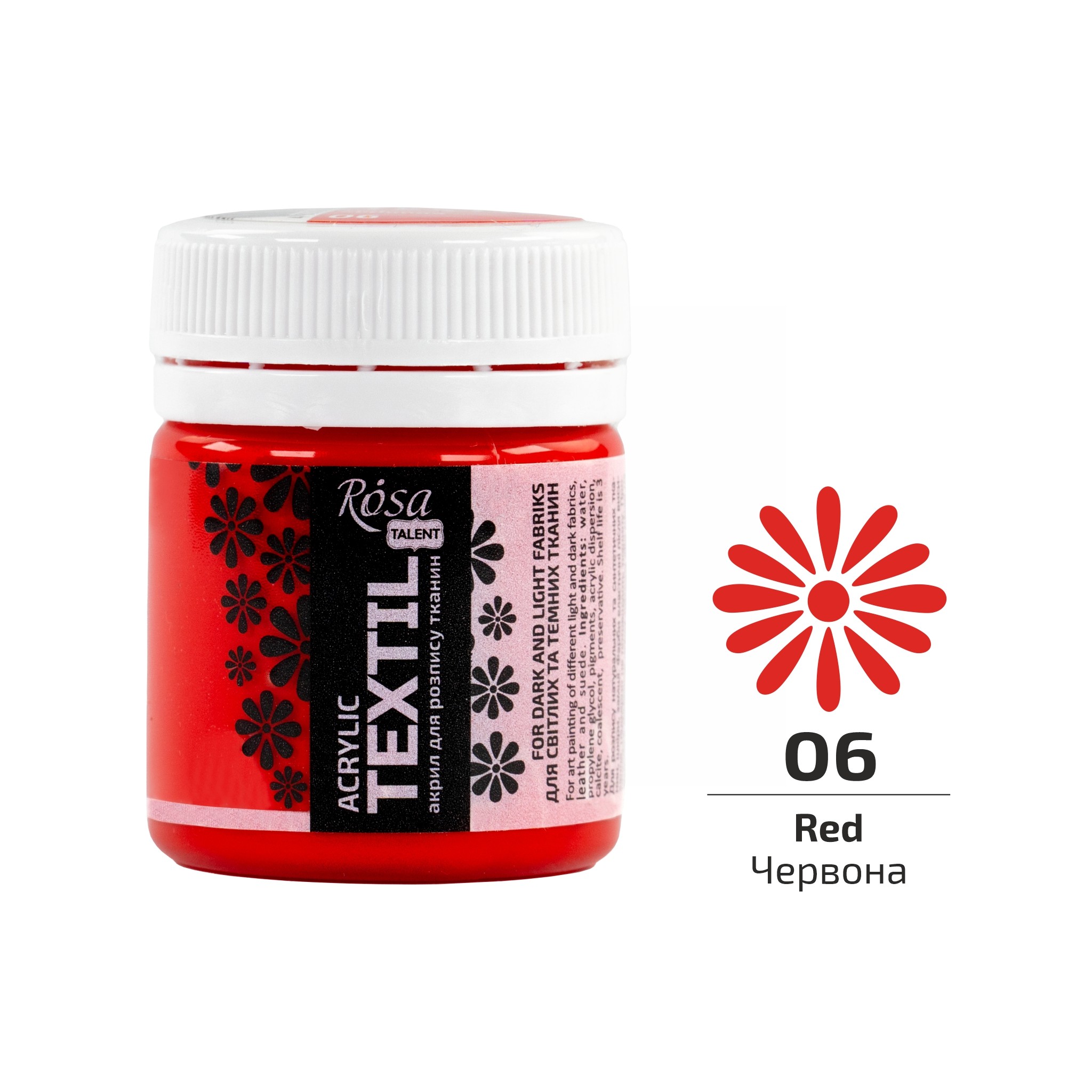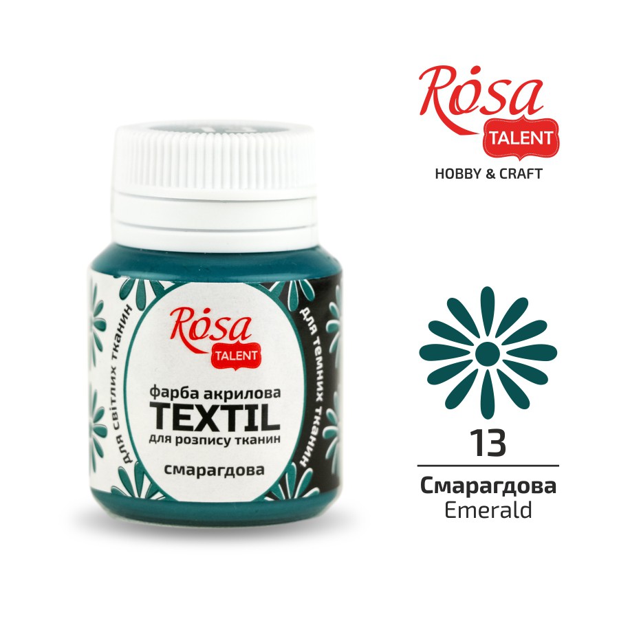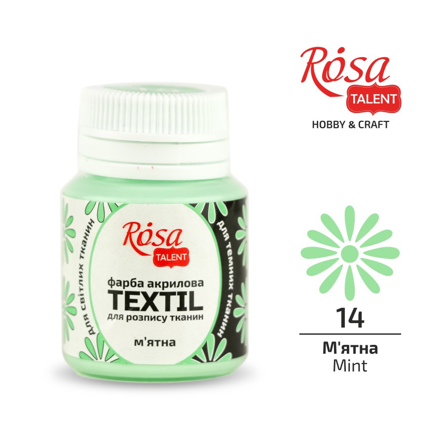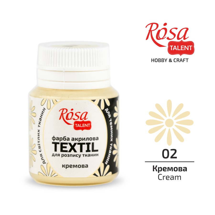 Акрилові фарби по тканині ROSA Talent на водній основі ідеальні для розпису світлих та темних тканин різного складу, в тому числі шкіри і замші. Вони еластичні після висихання та надмірно не потовщують тканину. За рахунок високого вмісту пігменту, фарби мають насичені та яскраві кольори, які добре змішуються між собою, утворюючи нові бажані відтінки. Завдяки однорідній консистенції фарби рівномірно лягають на тканину та не розтікаються, тому їх зручно наносити через трафарет.