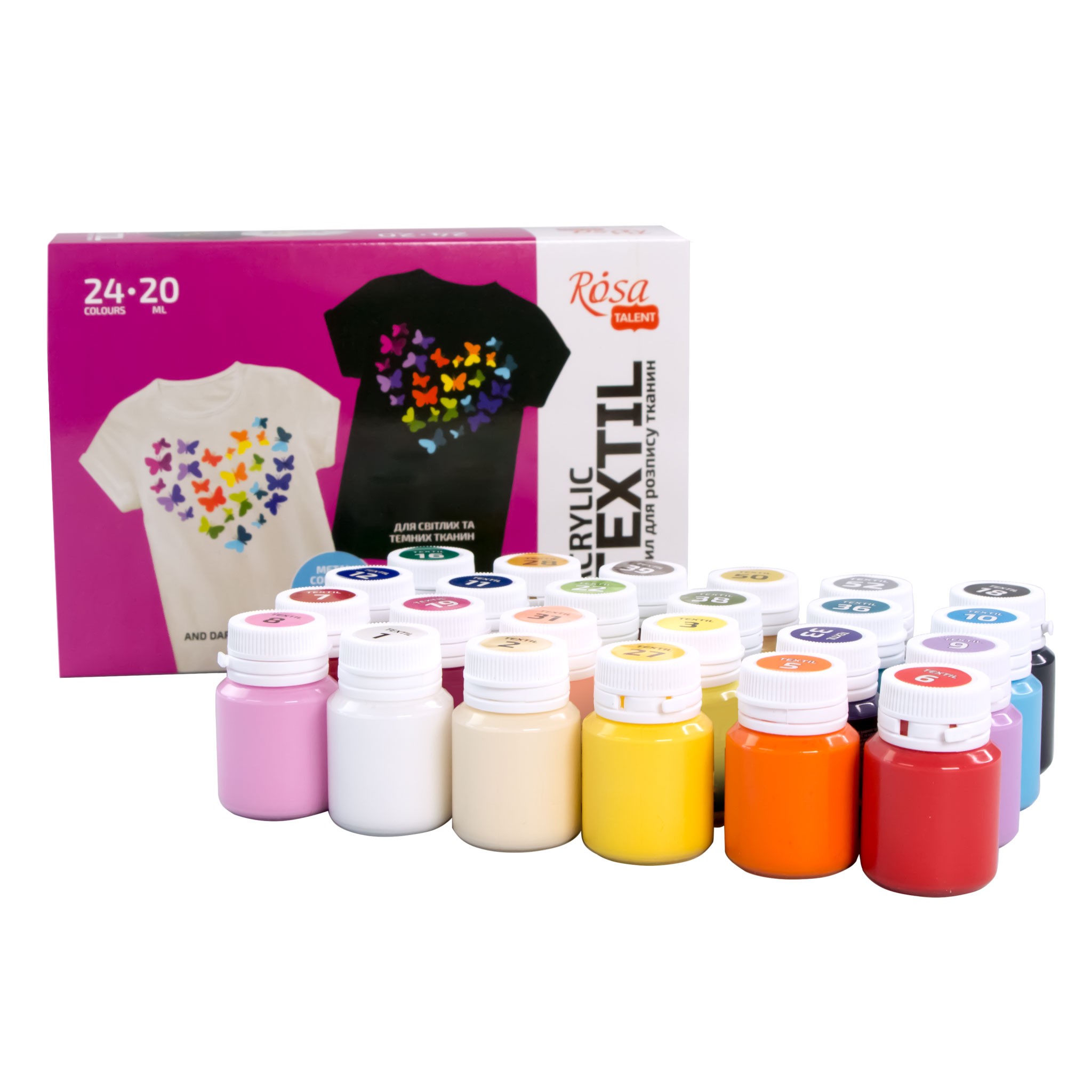 ФАРБи АКРИЛОВі ДЛЯ ТКАНИН 80МЛ ROSA TALENT ФАРБи акрилові для ТКАНИН 20МЛ ROSA TALENT Набори акрилу для розпису тканин