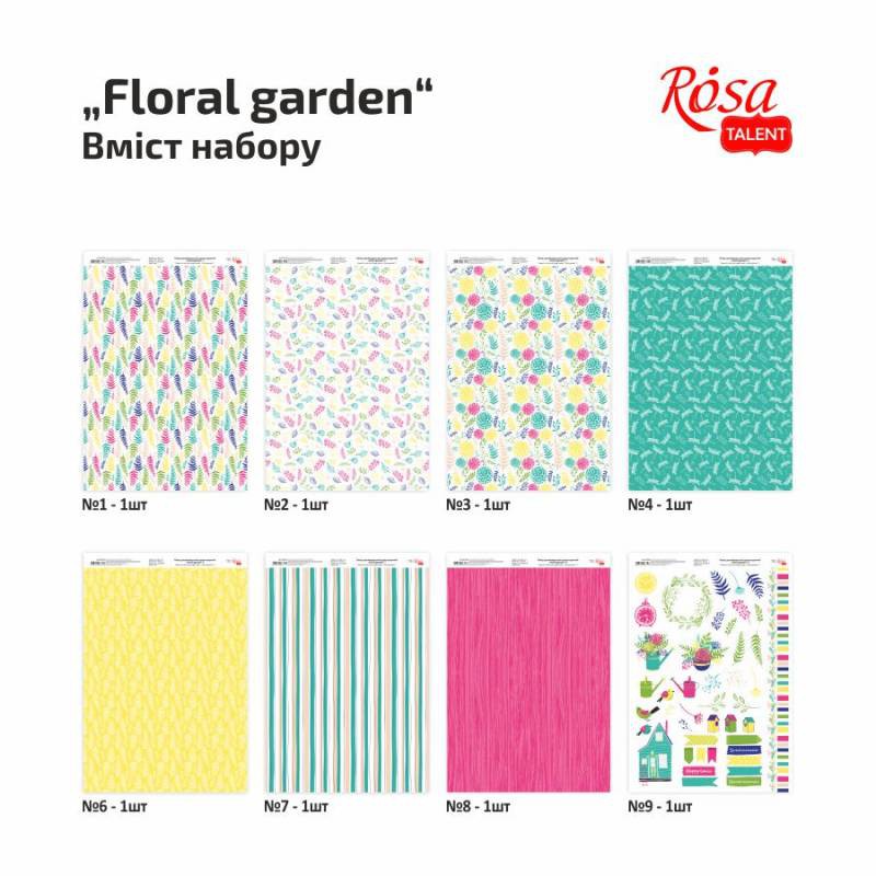 Набір дизайнерського одностор. паперу „Floral garden“ 21х29,7см 250г/м2 ROSA Talent