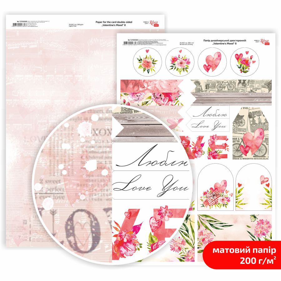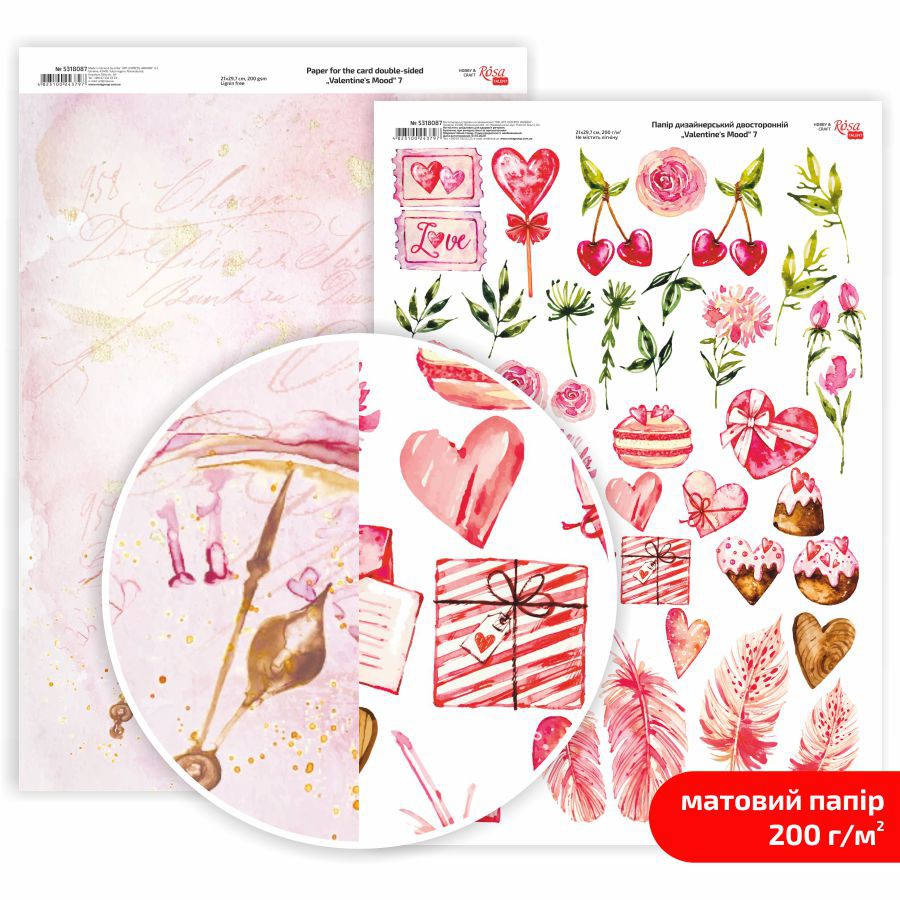 Папір матовий двостор. „Valentine’s Mood“ 21х29,7см 200г/м² ROSA Talent