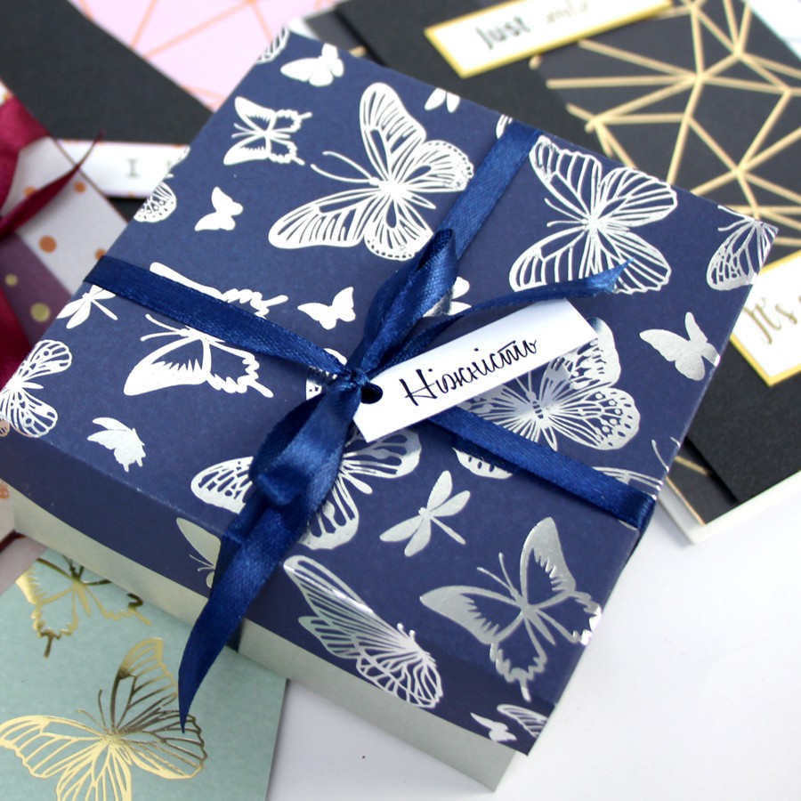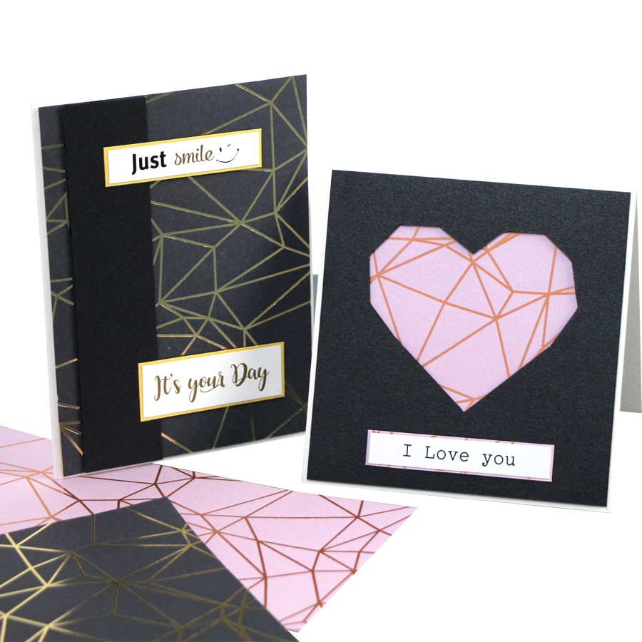 Дизайнерський двосторонній папір з фольгованим тисненням доступний поштучно та в наборах.