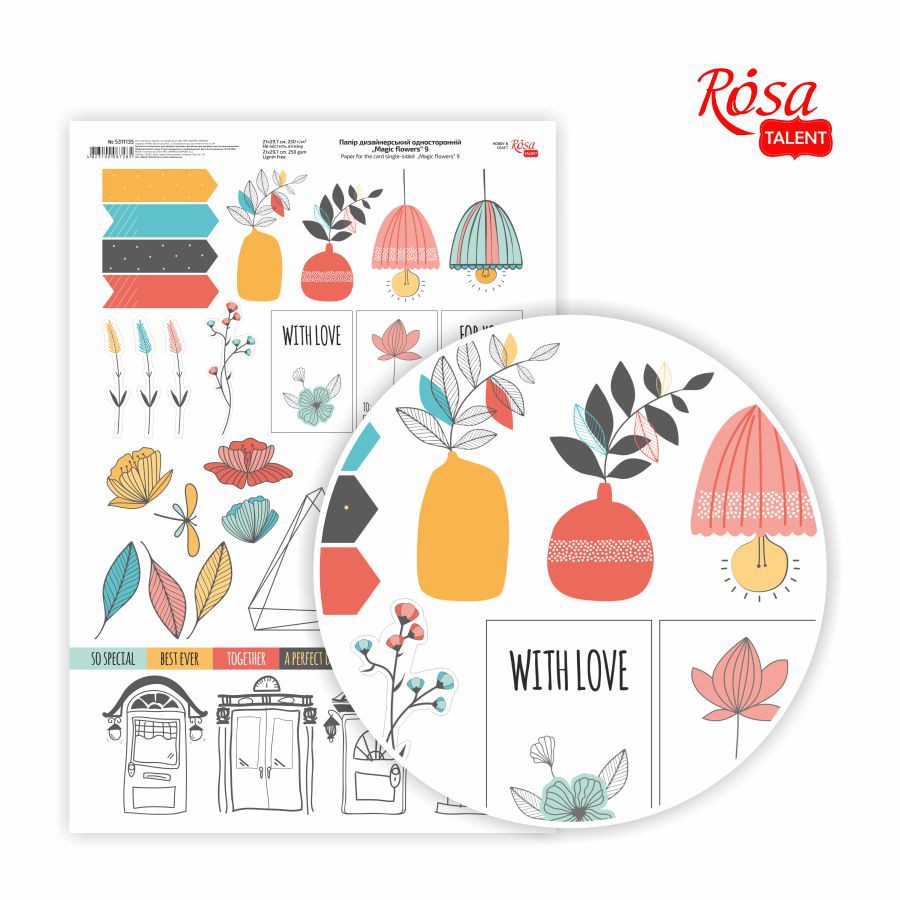 Папір глянцевий одностор. „Magic flowers“ 21х29,7см 250г/м2 ROSA Talent