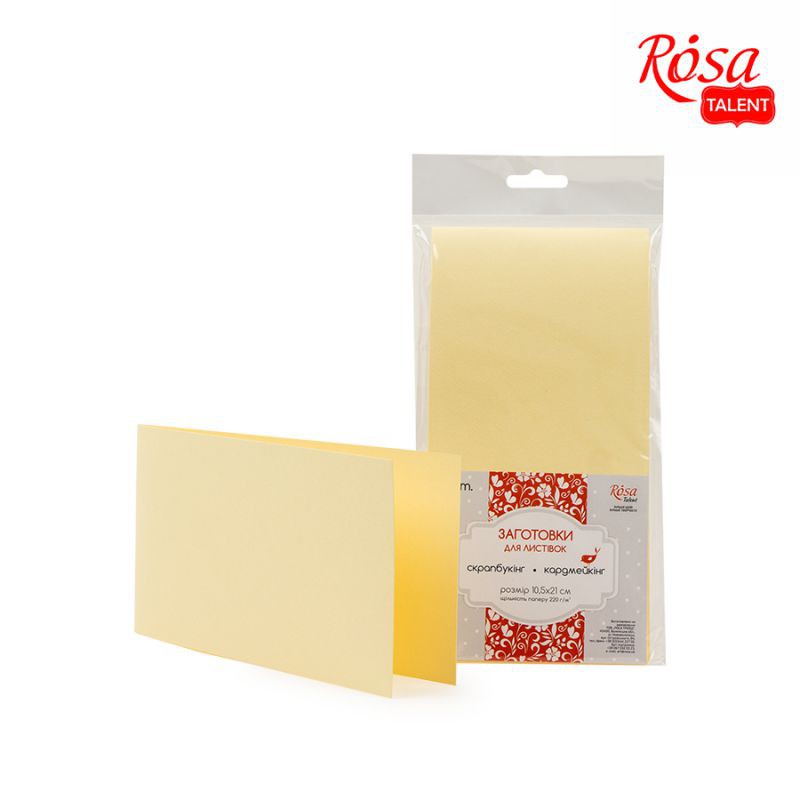 Набори заготовок для листівок ROSA Talent виготовленні із щільного матового паперу. Їх використовують в техніці кардмейкінг для створення вітальних листівок, запрошень. Кожен набір містить 5 заготовок одного розміру і кольору.