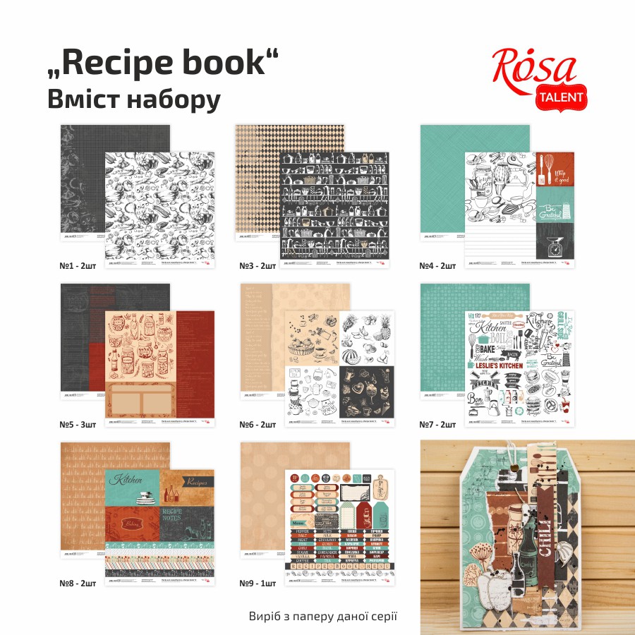 Набір паперу для скрапбукінгу „Recipe book“ 16 арк. 30,48×30,48см 200г/м2 ROSA Talent