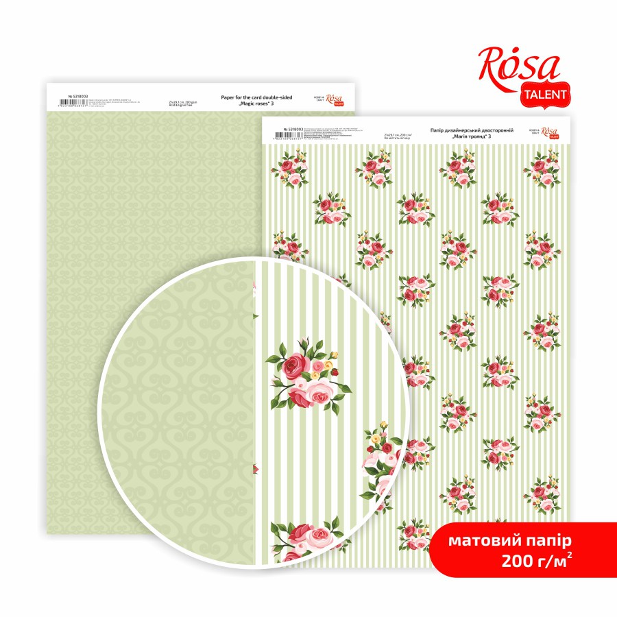 Папір матовий двостор. „Магія троянд“ 21х29,7см 200г/м2 ROSA Talent