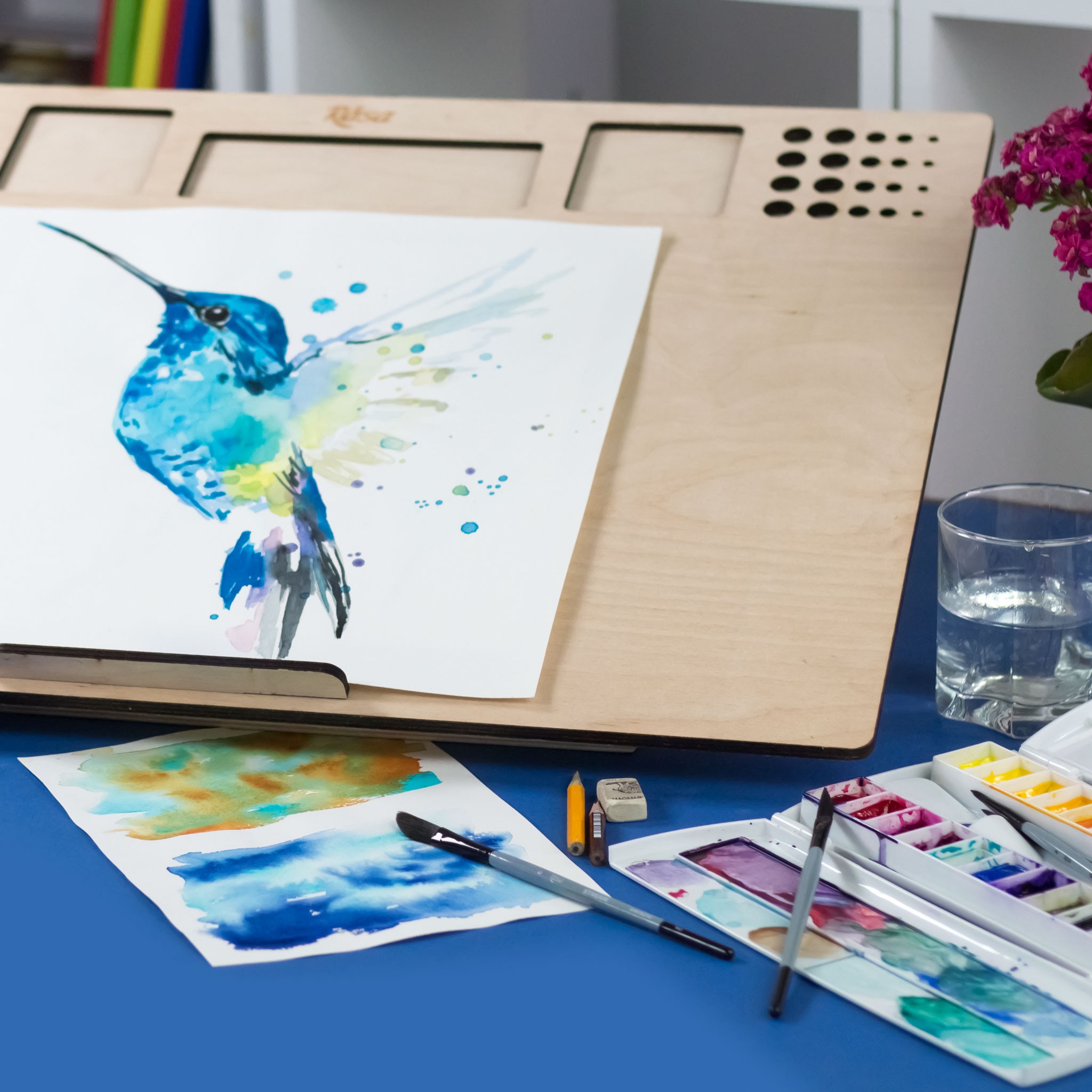 Мольберт настільні від ROSA Studio – чудовий помічник для виконання художніх робіт вдома чи в студії, для виставок та експозицій.