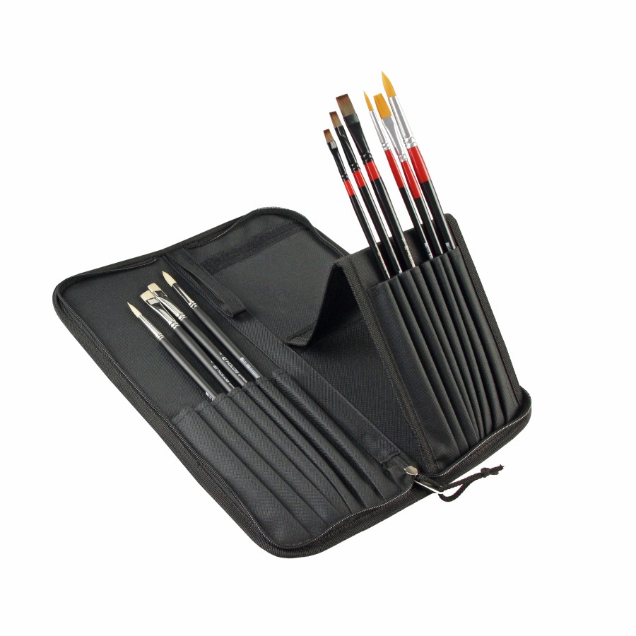 • Застібка блискавка та якісні комірки надійно фіксують пензлі в середині пеналу;