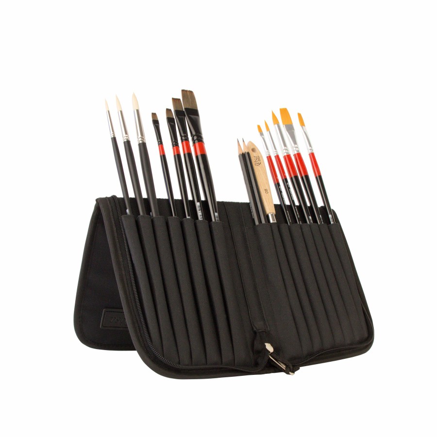 • Застібка блискавка та якісні комірки надійно фіксують пензлі в середині пеналу;