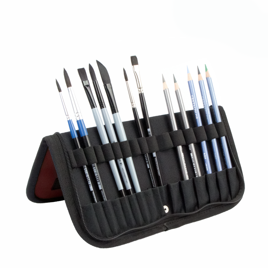 • Застібка блискавка та якісні комірки надійно фіксують пензлі в середині пеналу;