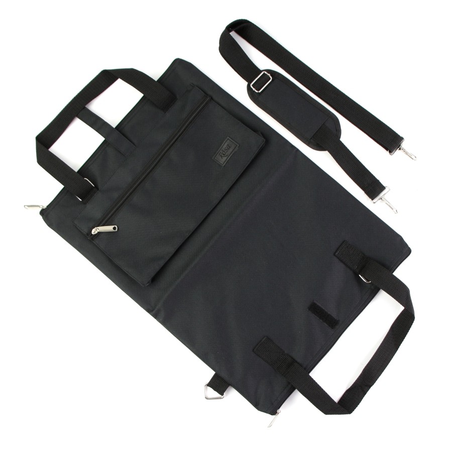 Сумки містять цупку картонну основу, завдяки якій Ваша робота при транспортуванні не помнеться та не намокне. Для зручності в експлуатації передбачені спеціальні ручки та ремінь через плече, з можливістю регулювання довжини. На зовнішній стороні сумки міститься глибока кишеня на блискавці для аксесуарів.